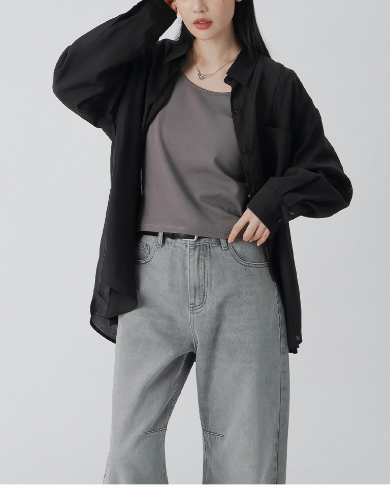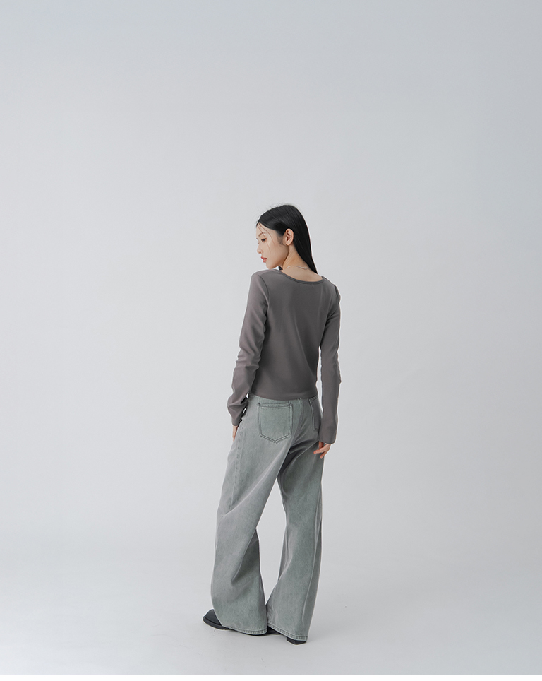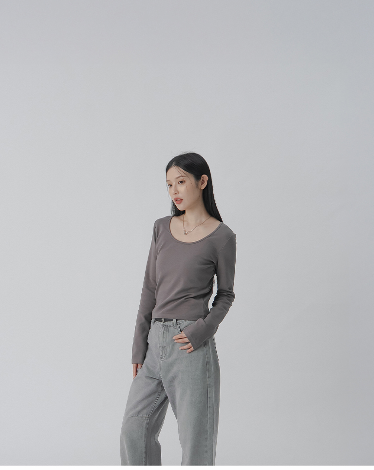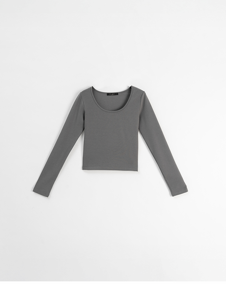 簡約素面U領合身上衣-深灰 S/M/L