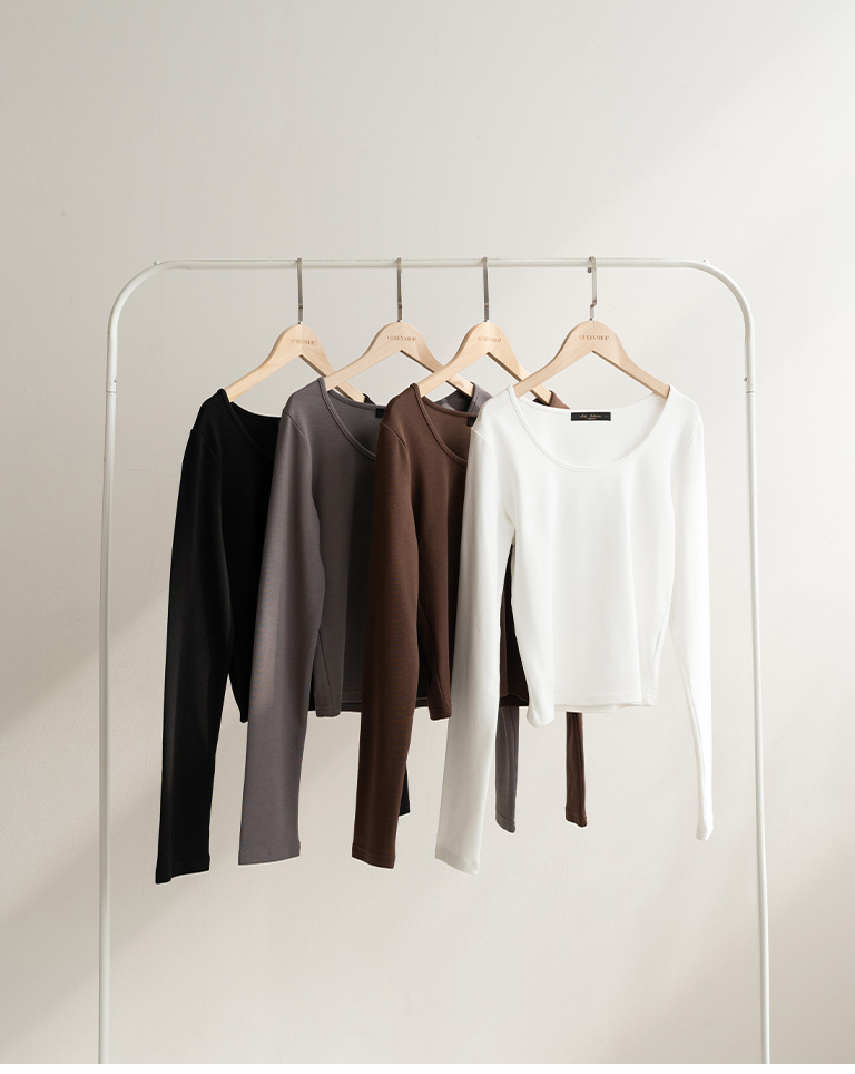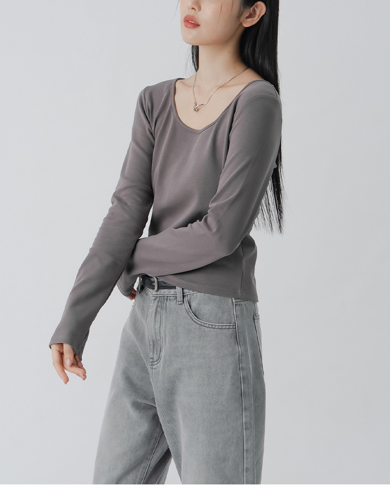 簡約素面U領合身上衣
