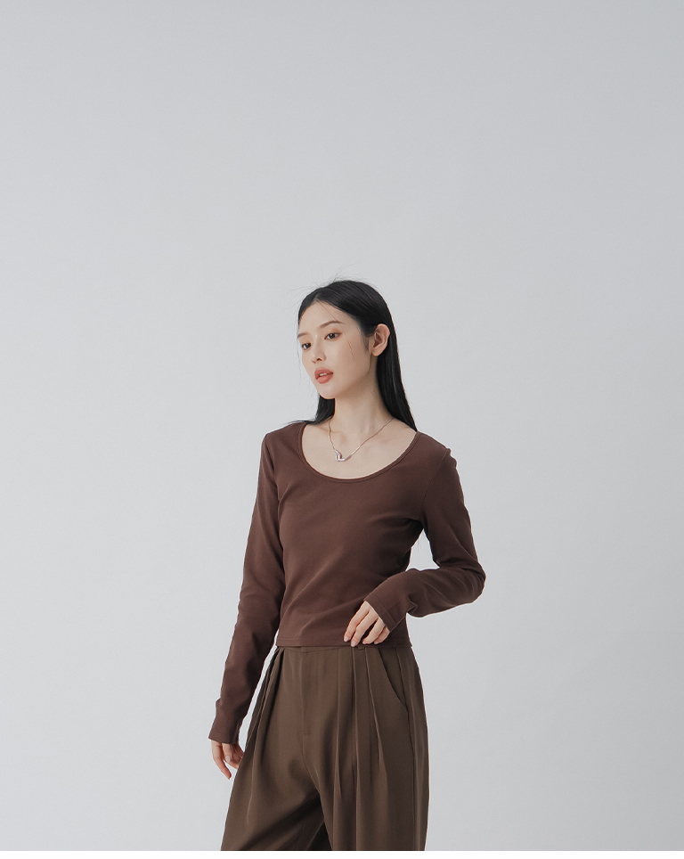 S~L身形實測!分尺寸皺皺木耳邊透膚高領長袖上衣