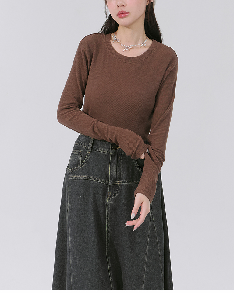簡約坑條感彈性圓領上衣