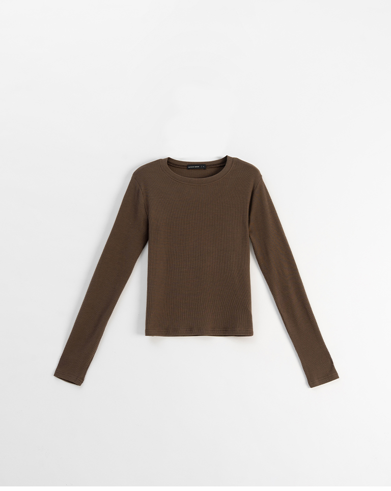 簡約坑條感彈性圓領上衣-咖 S/M/L