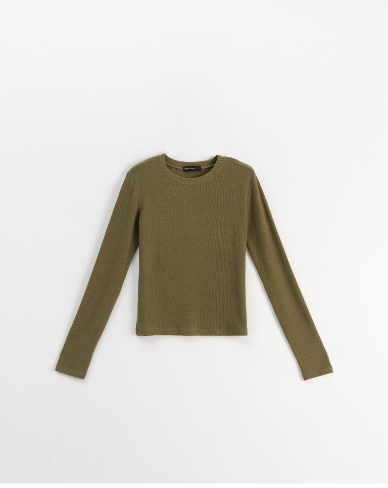 簡約坑條感彈性圓領上衣-綠 S/M/L
