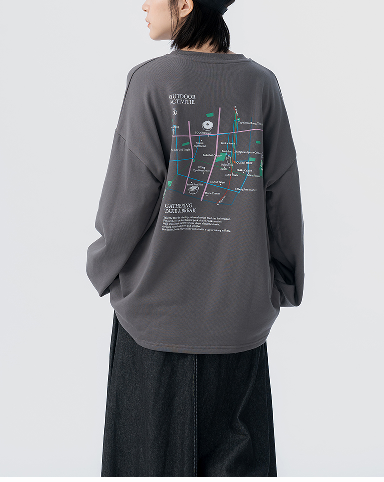 背後地圖印花造型寬版上衣