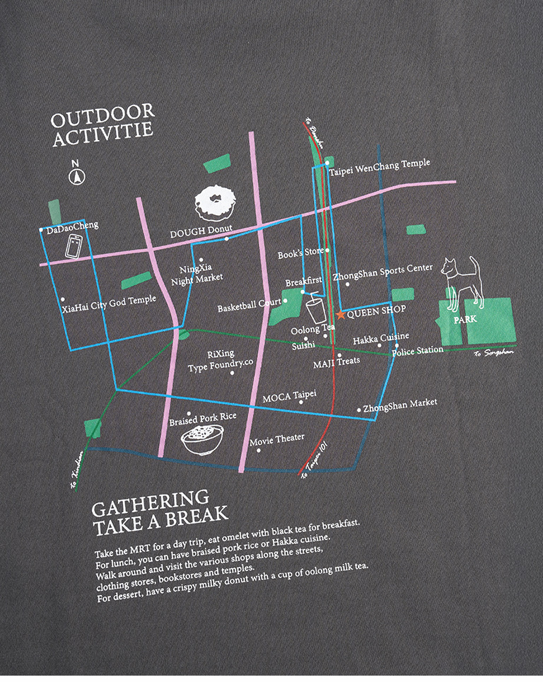 背後地圖印花造型寬版上衣 兩色售 1/2
