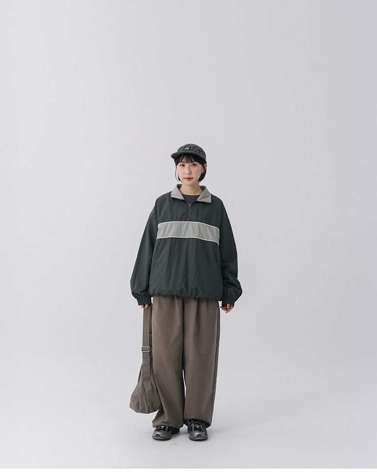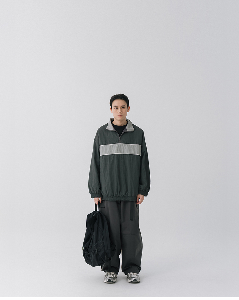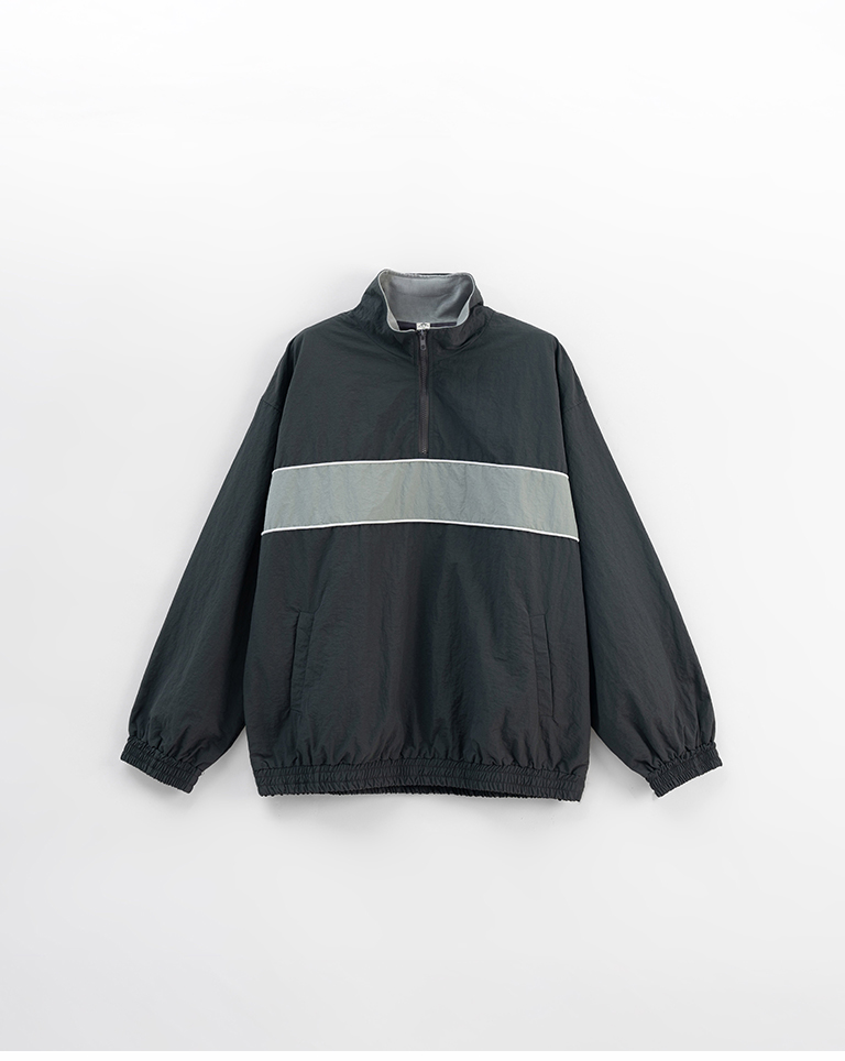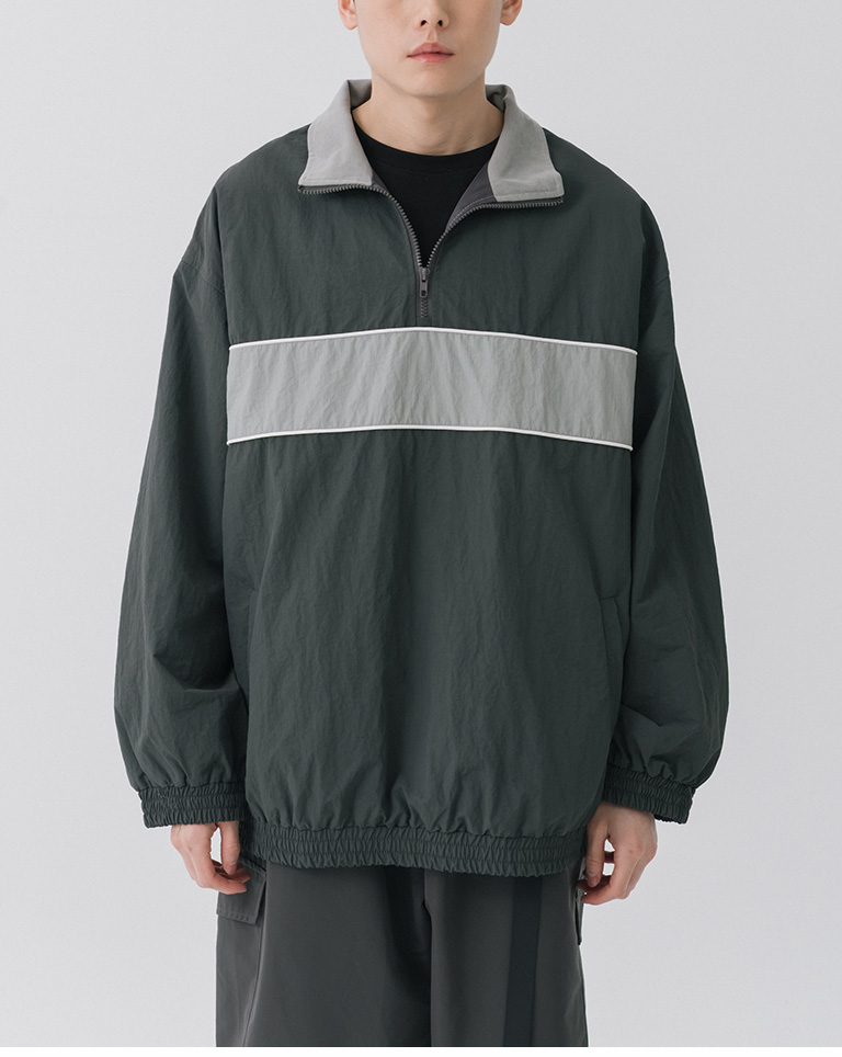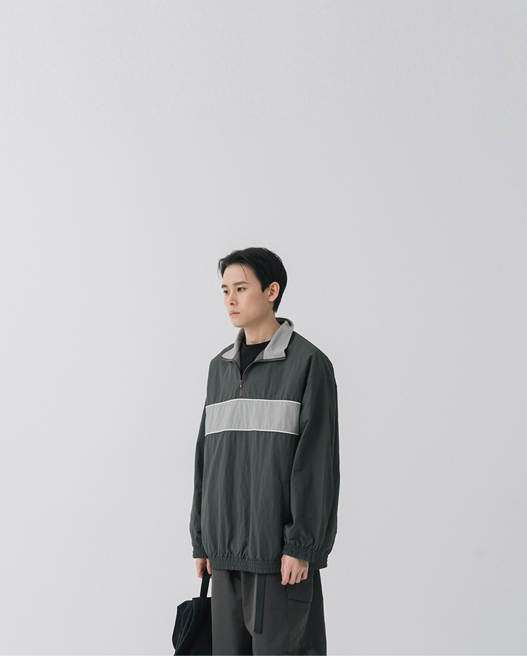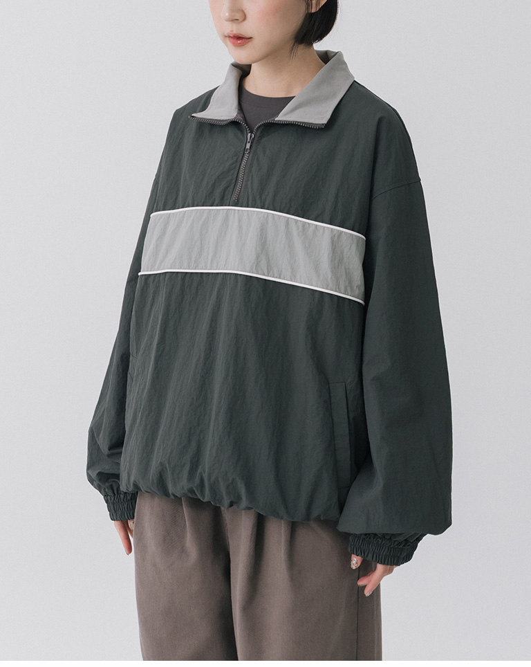 配色半門襟設計刷刷長袖上衣-深灰1/2