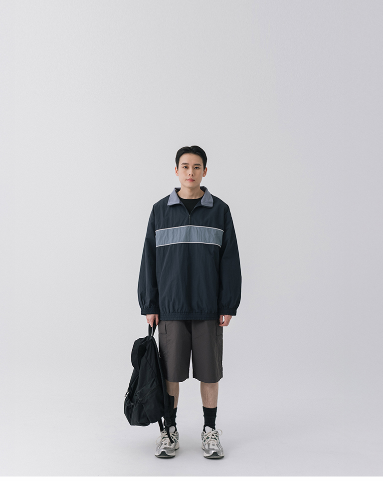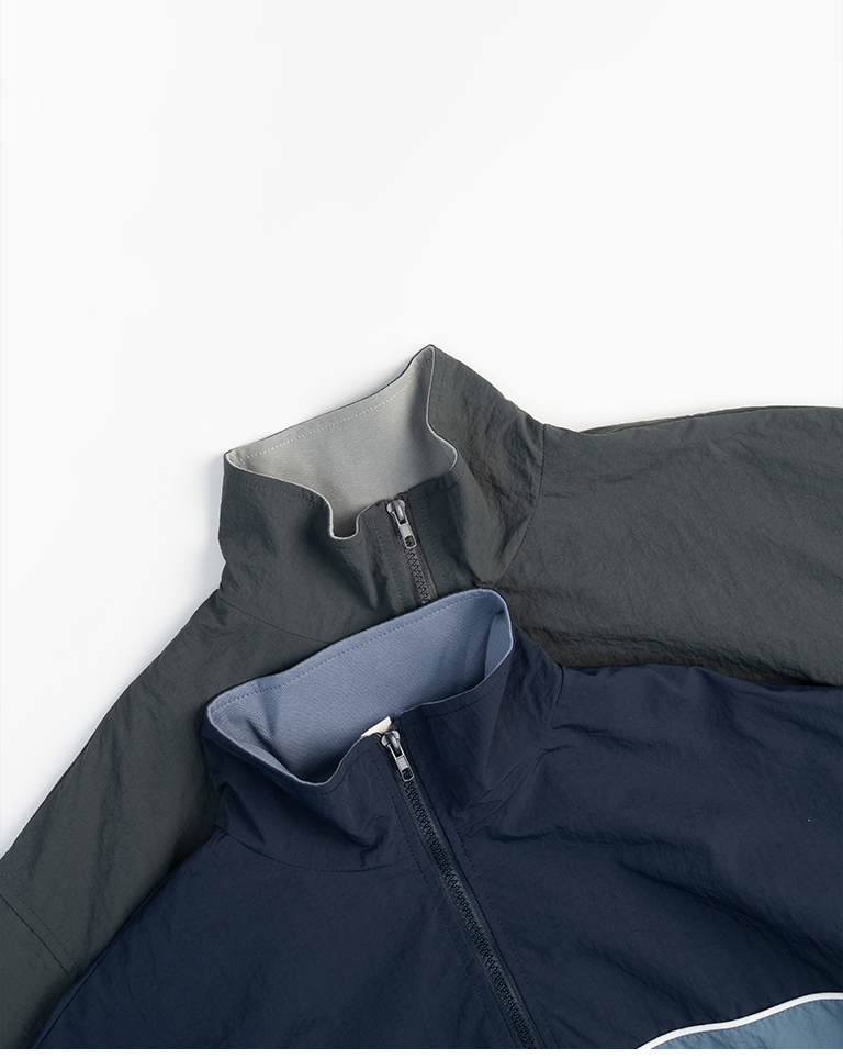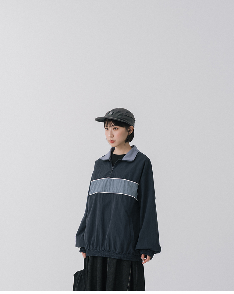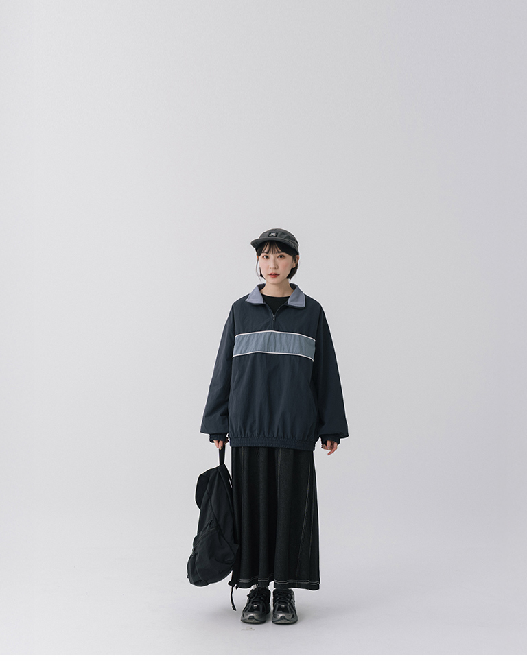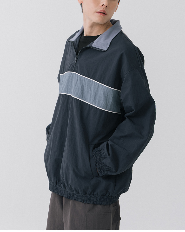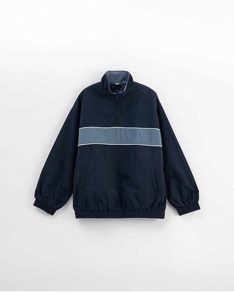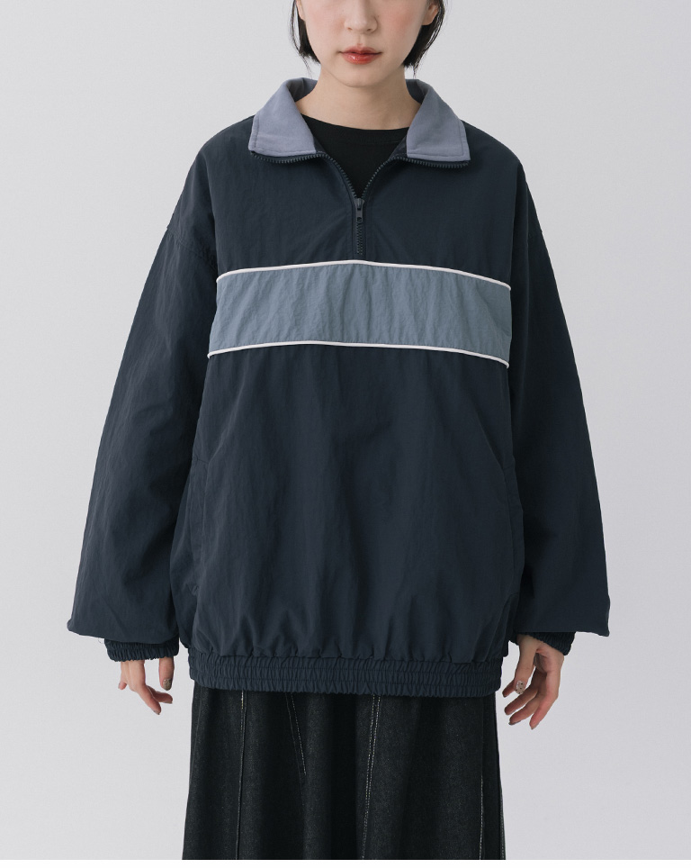 配色半門襟設計刷刷長袖上衣-深藍1/2