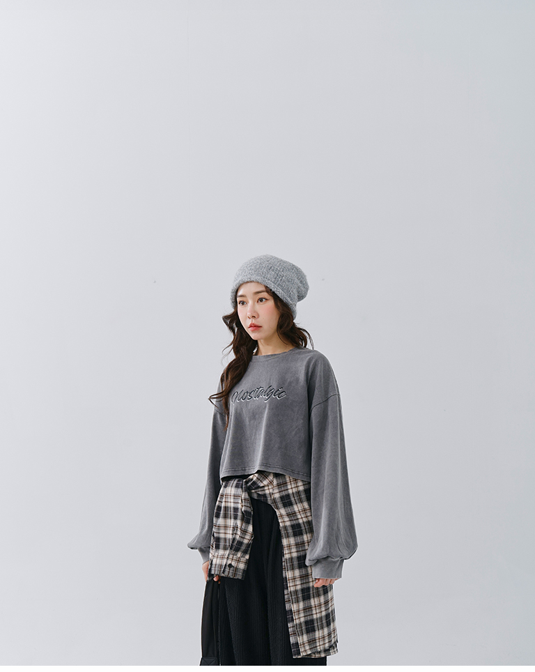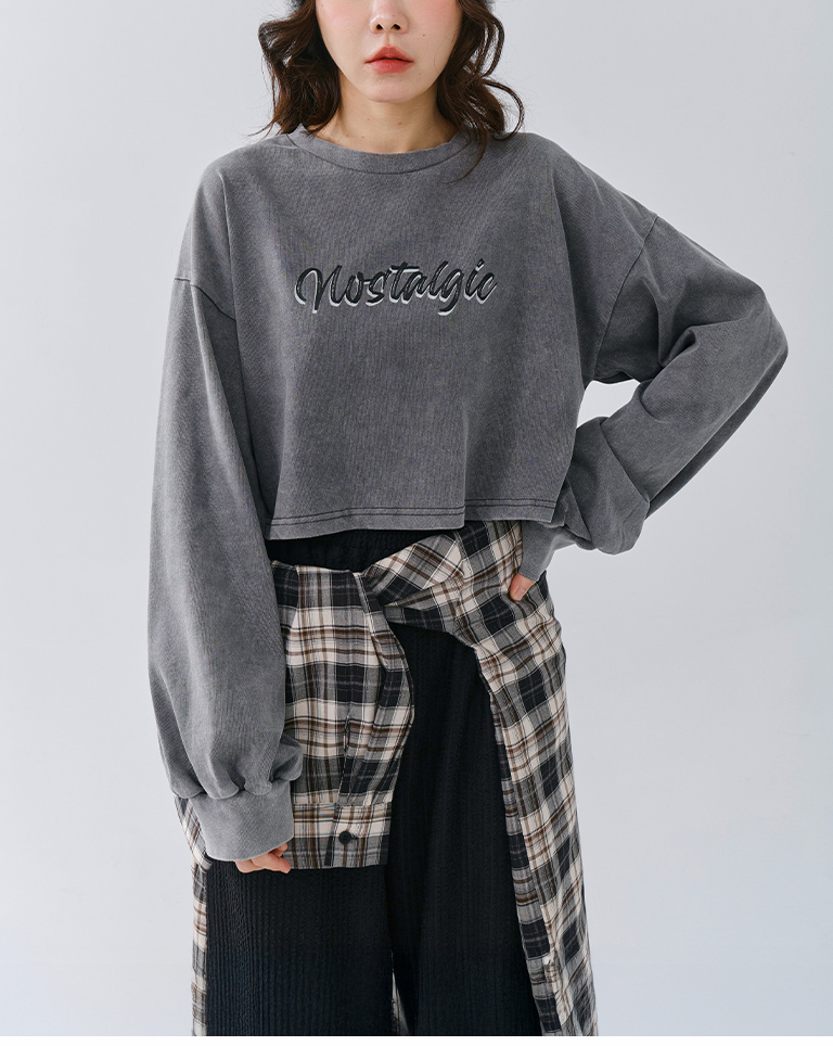 水洗懷舊英文印字短版衛衣