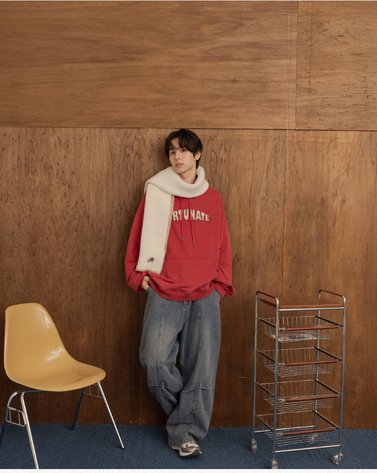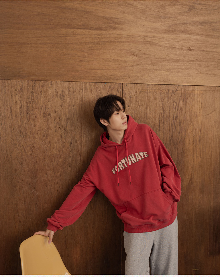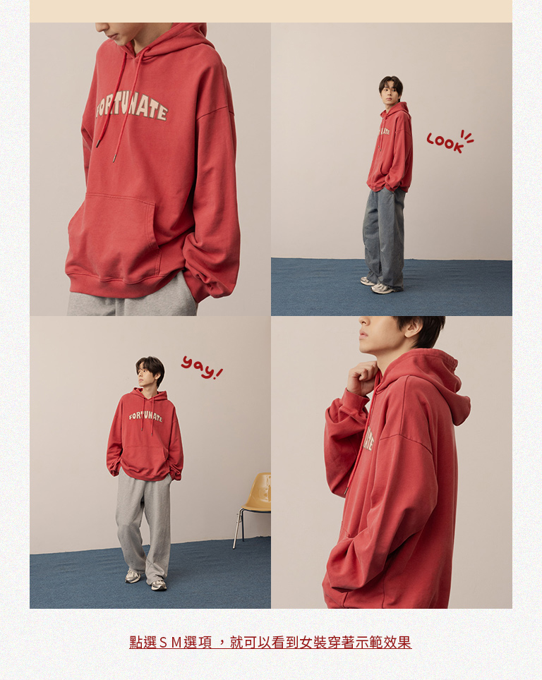 姵萱聯名 洗水刺繡口袋連帽衛衣-紅S/M/L/XL