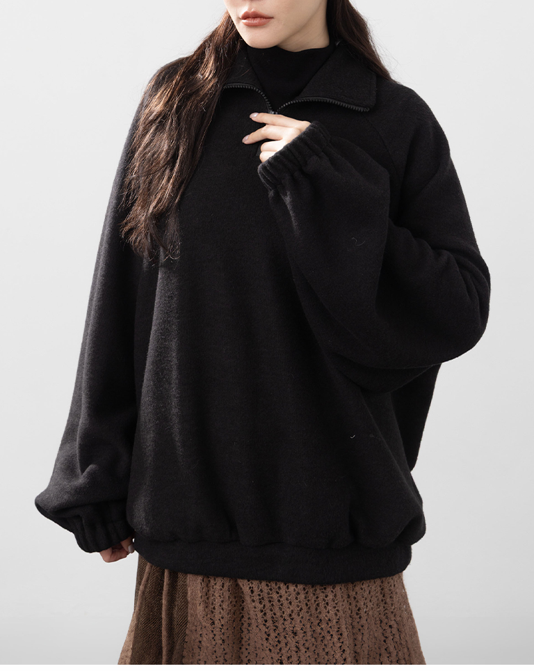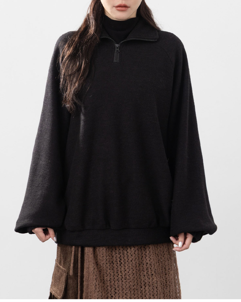 S~L身形實測!分尺寸皺皺木耳邊透膚高領長袖上衣