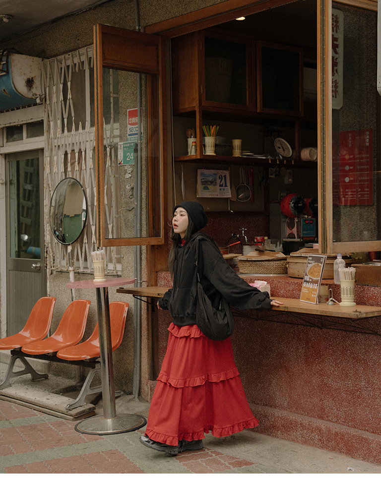 S~L身形實測!分尺寸皺皺木耳邊透膚高領長袖上衣