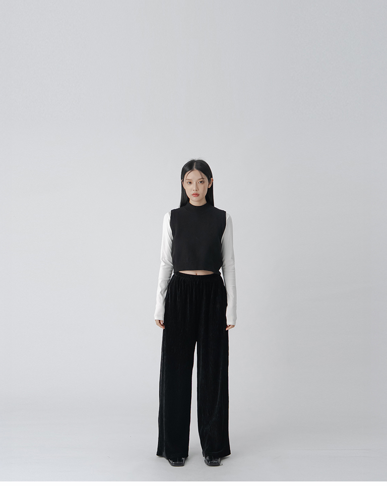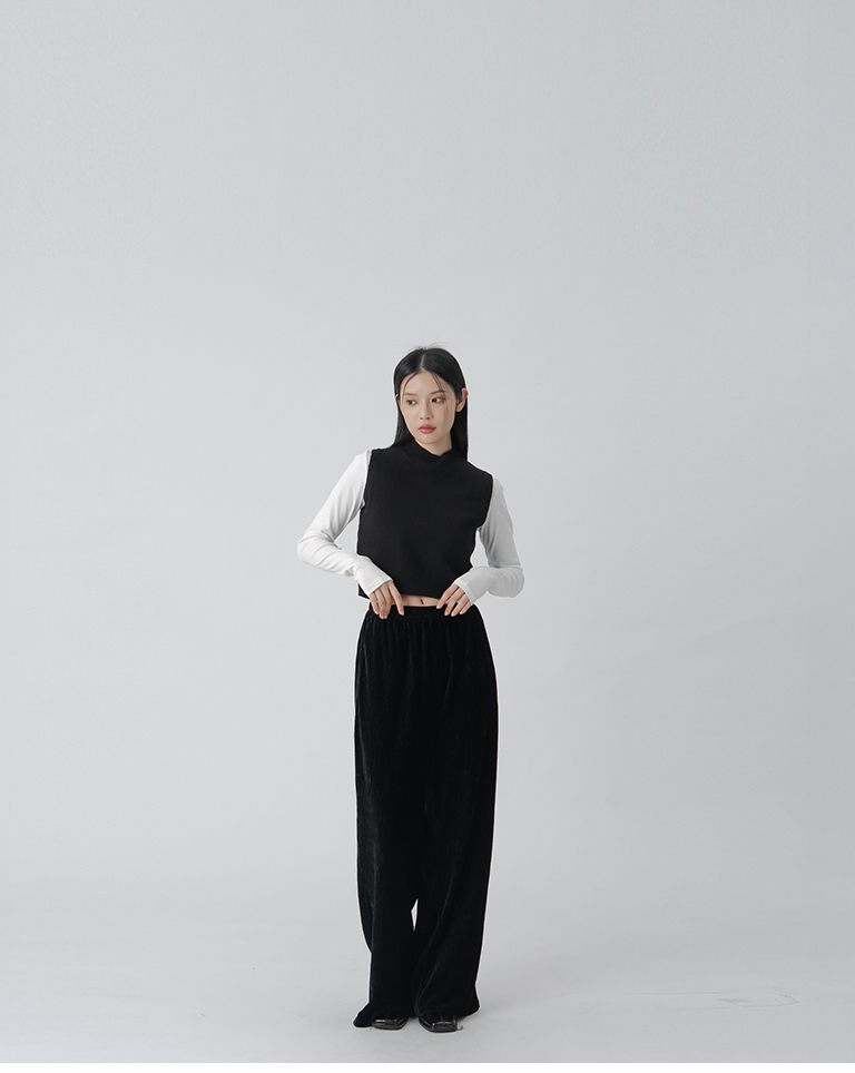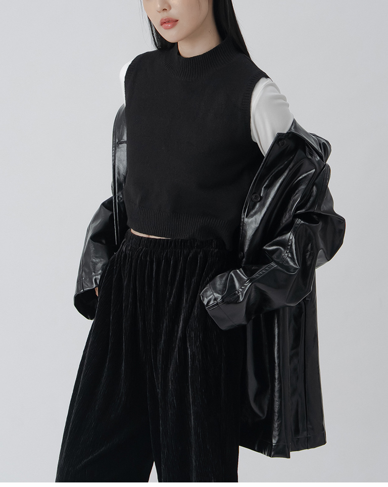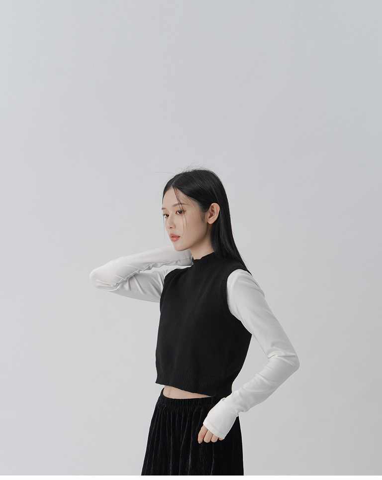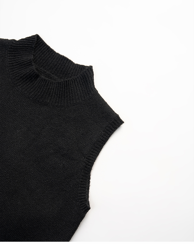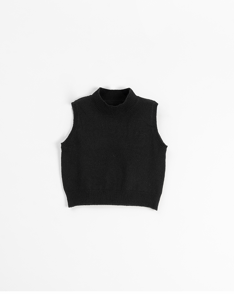 微高領合身短版針織背心-黑 S/M