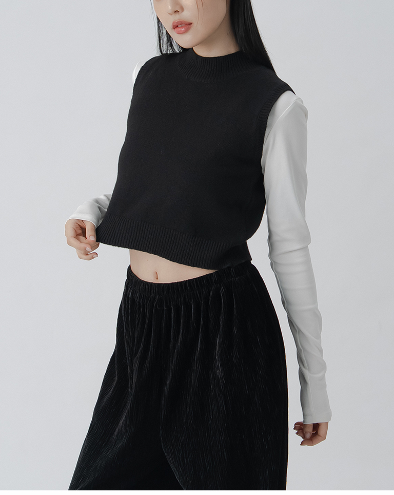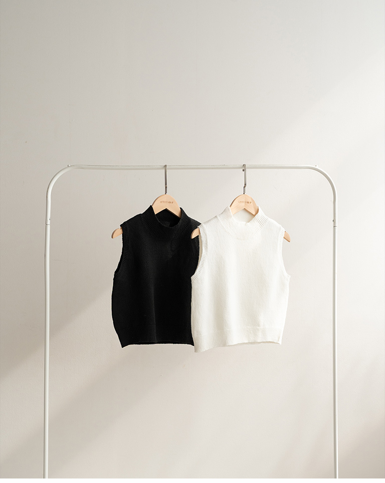 微高領合身短版針織背心