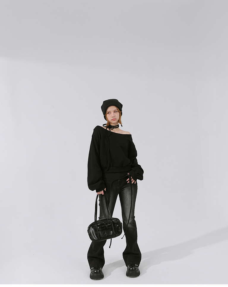 S~L身形實測!分尺寸皺皺木耳邊透膚高領長袖上衣
