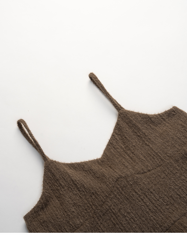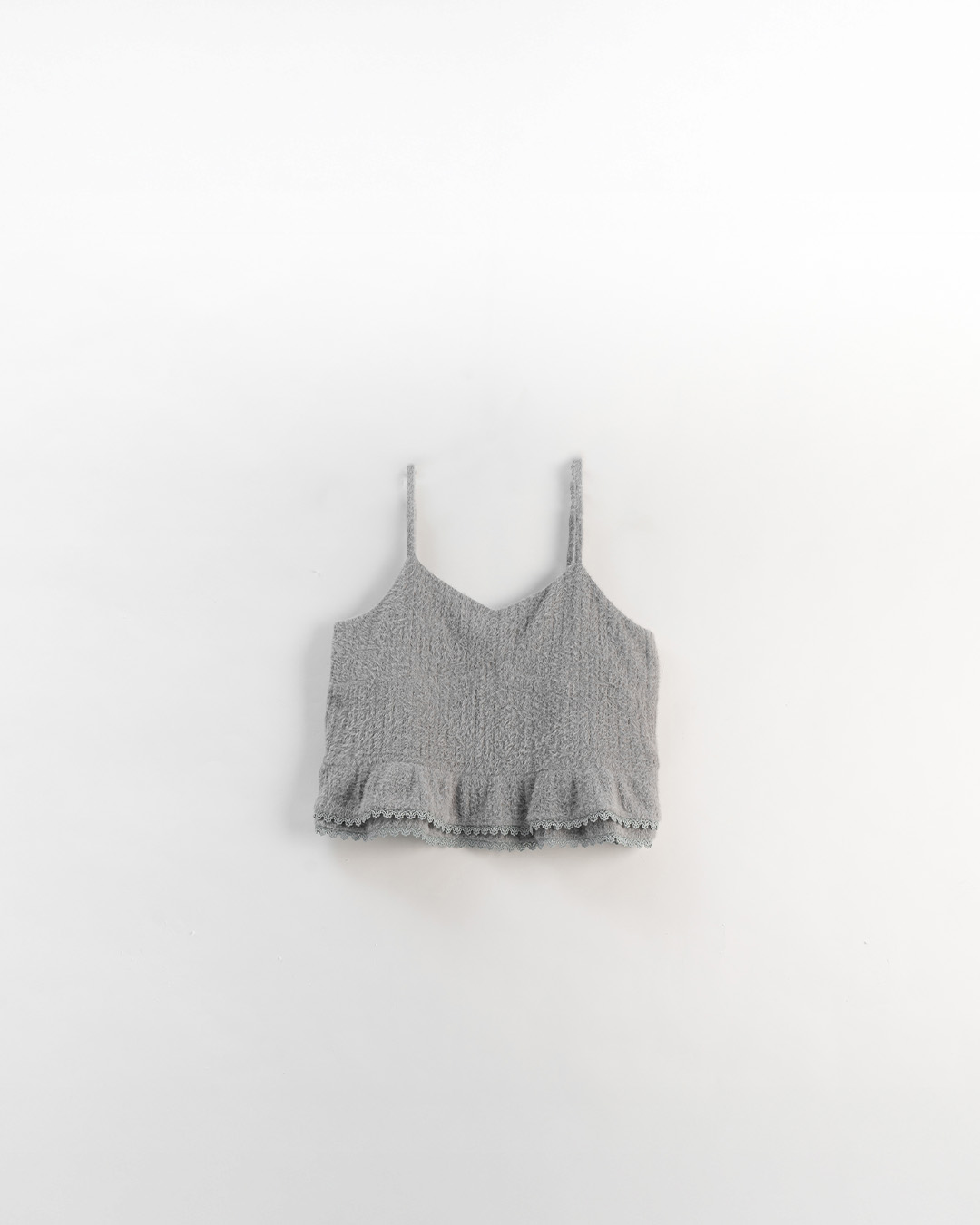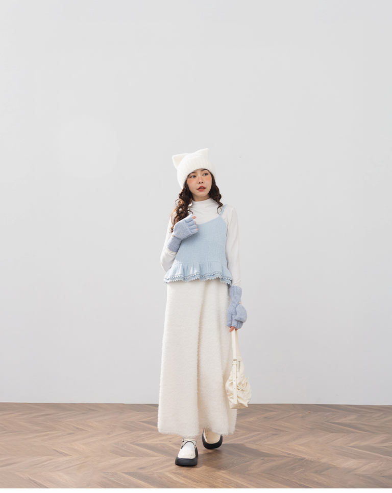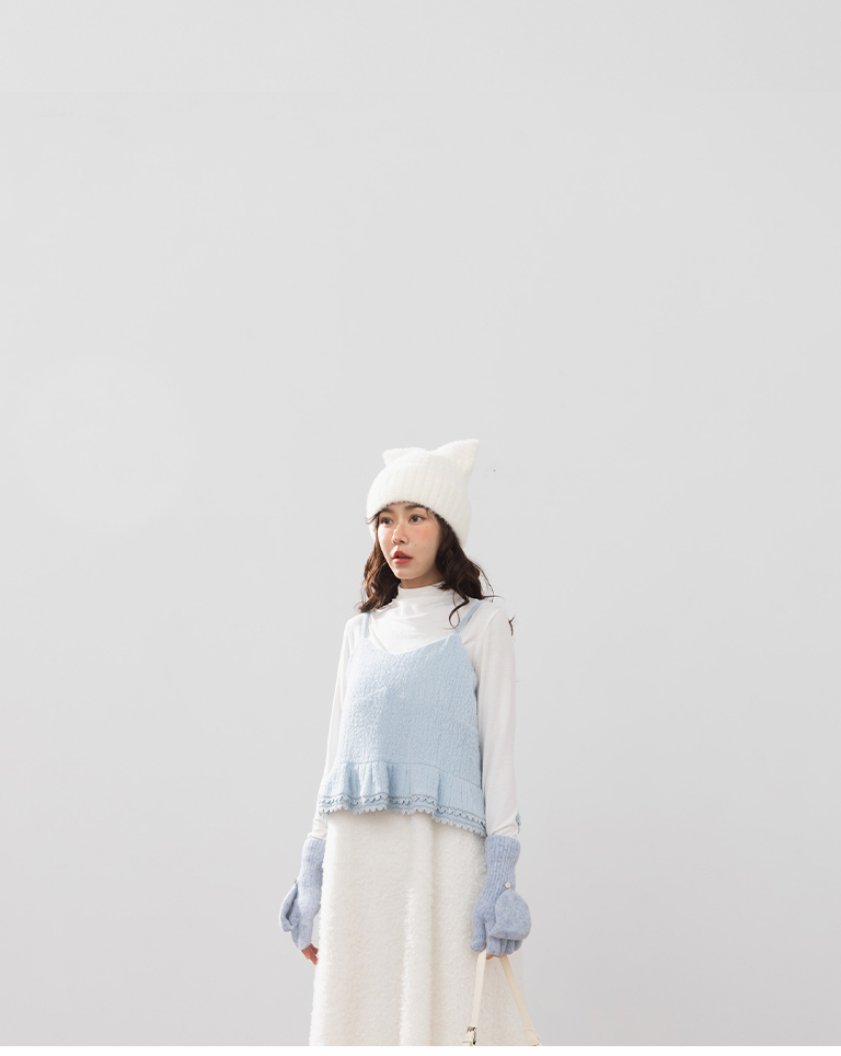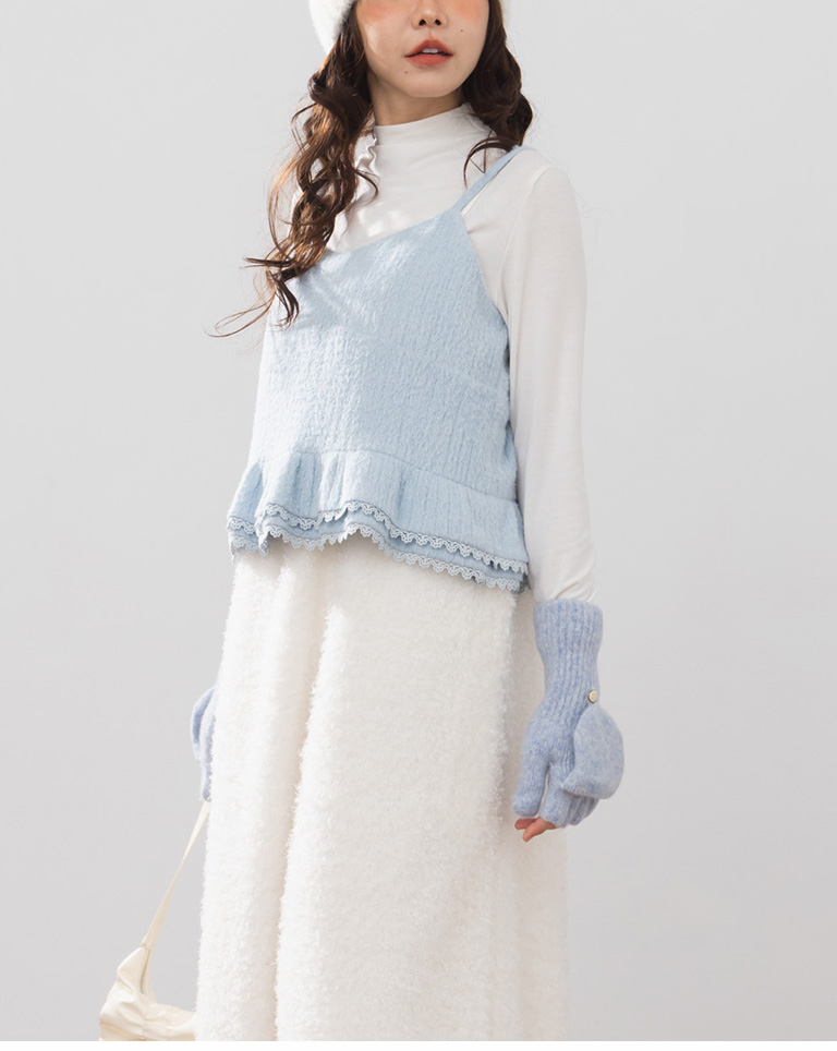 蕾絲下襬毛絨設計細肩罩衫背心-藍
