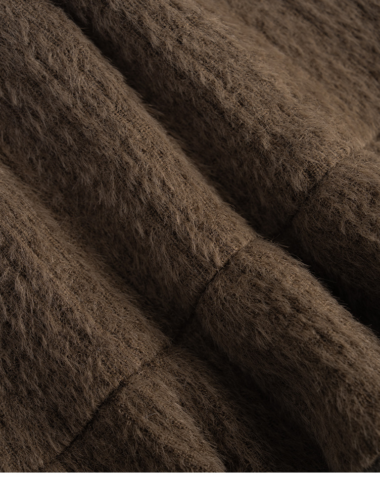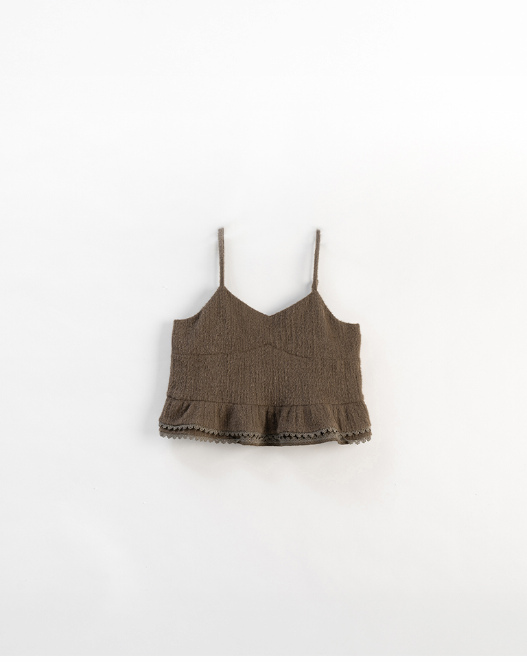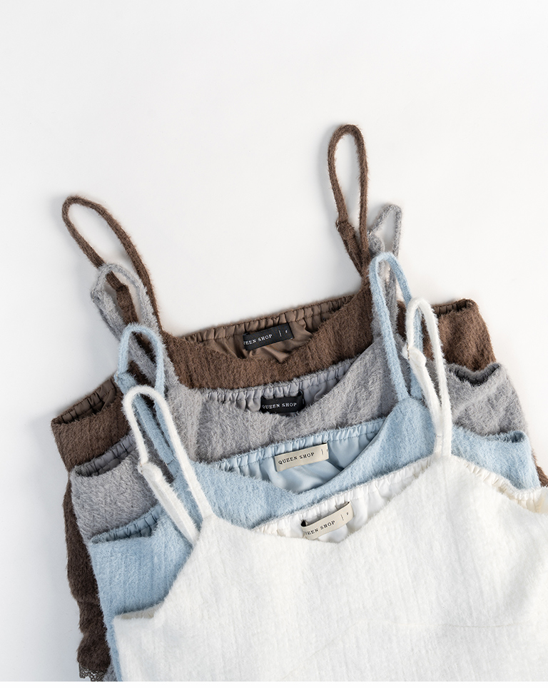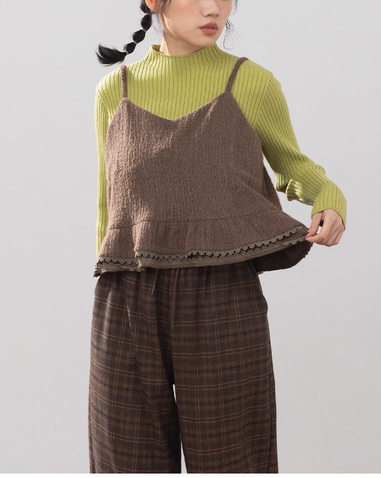蕾絲下襬毛絨設計細肩罩衫背心-咖啡