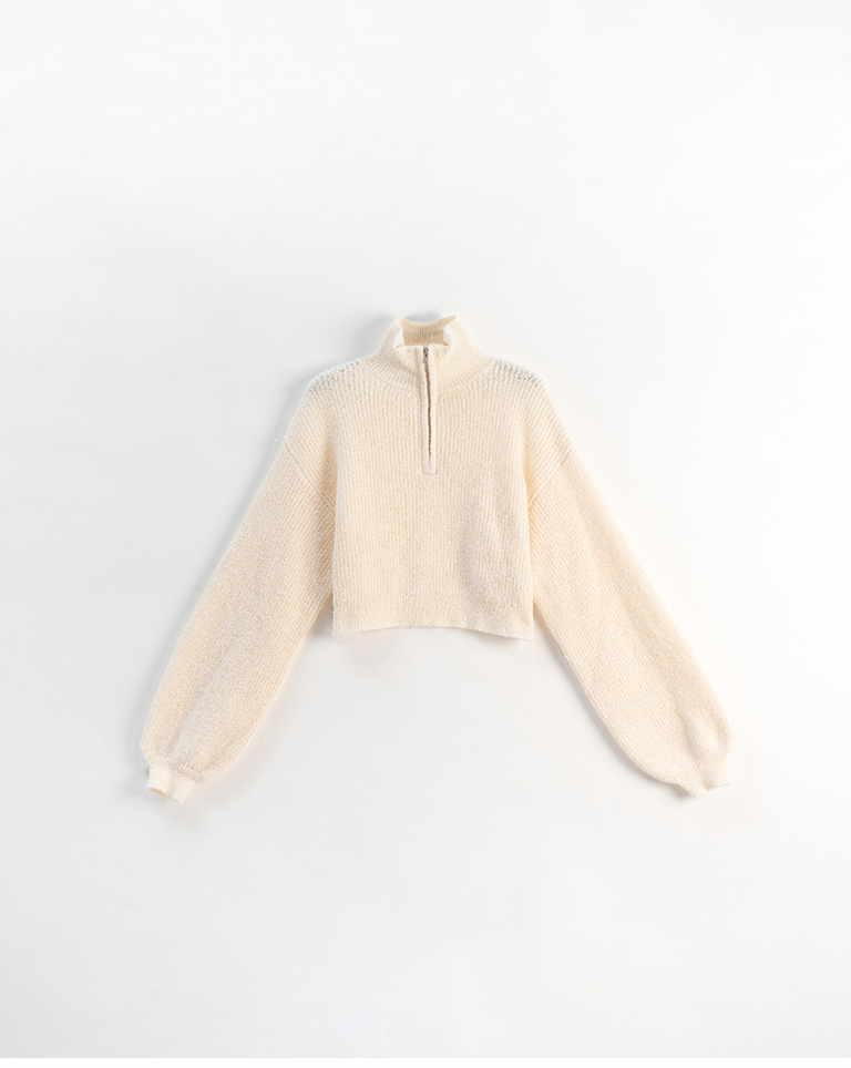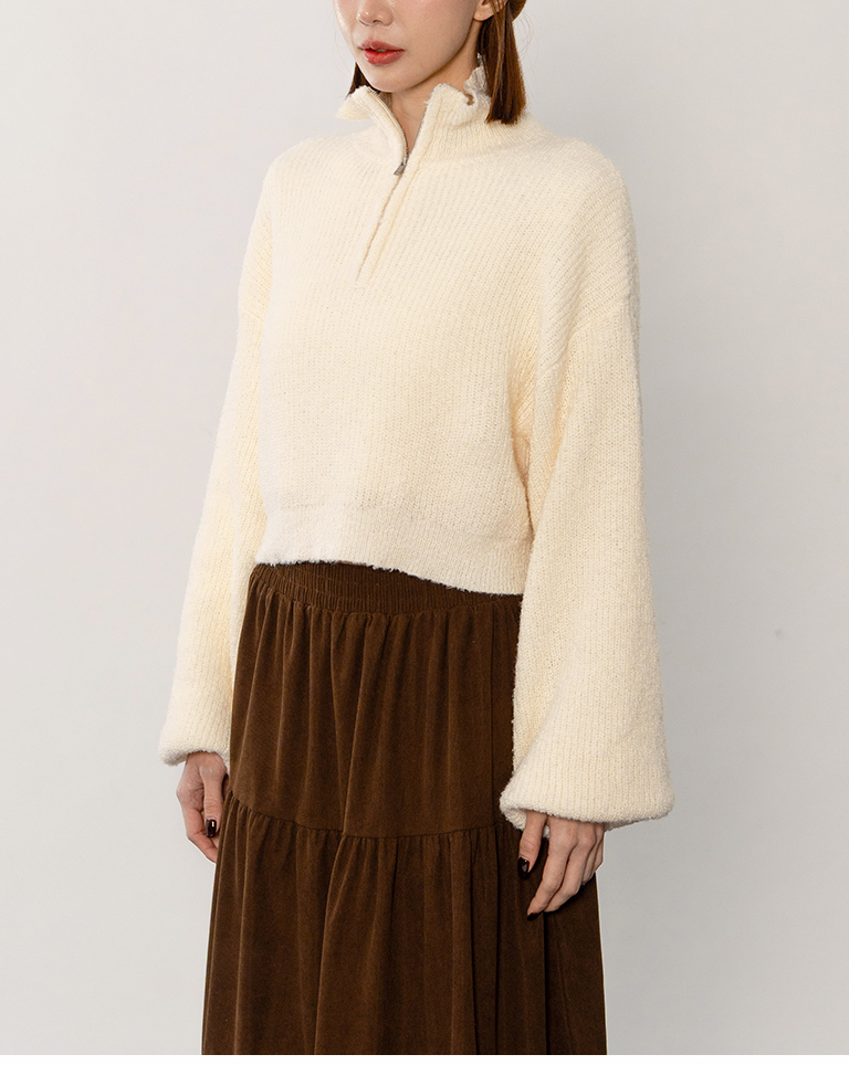 半門襟領片短版針織上衣