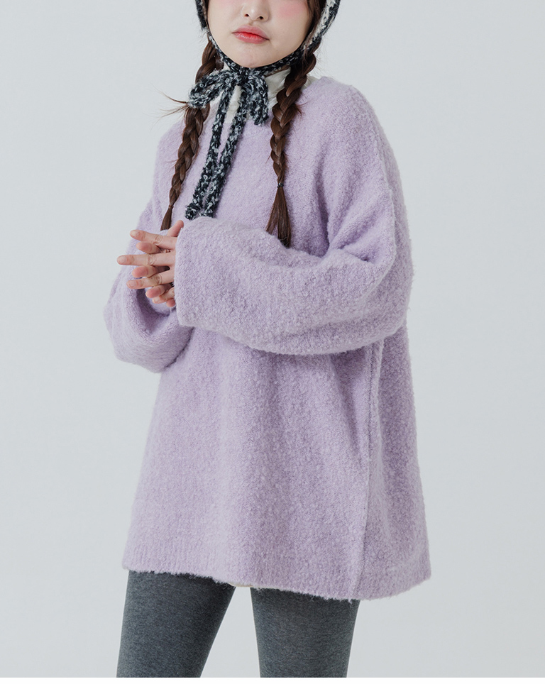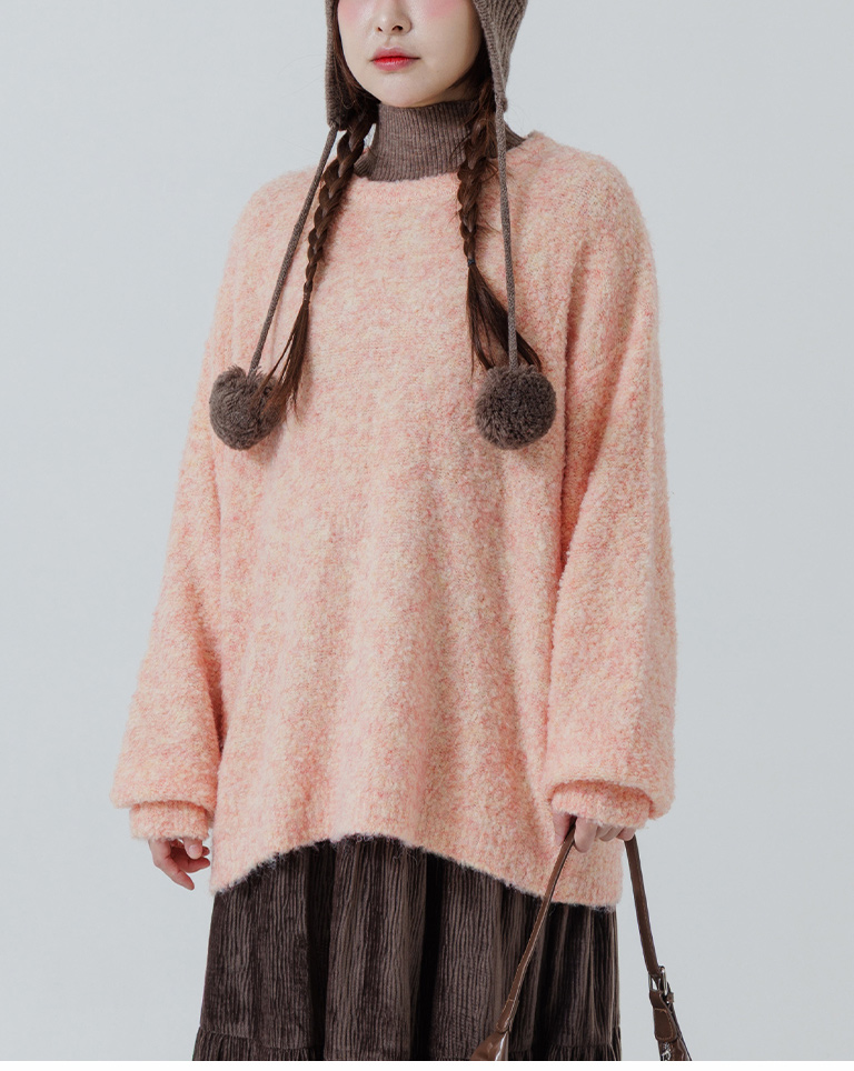 立體毛圈花紗寬版針織毛衣 三色售