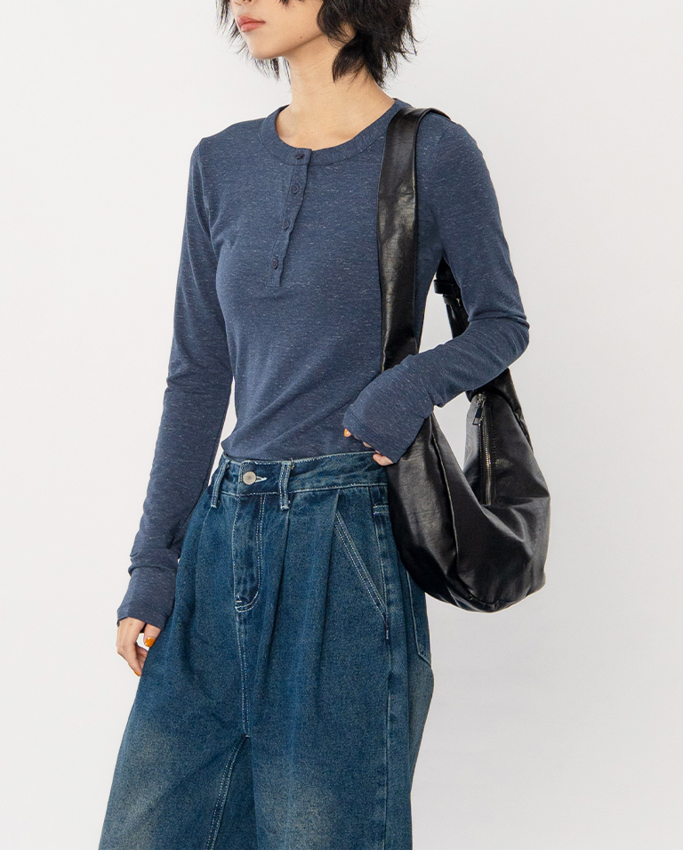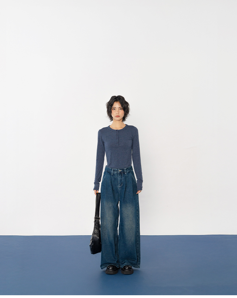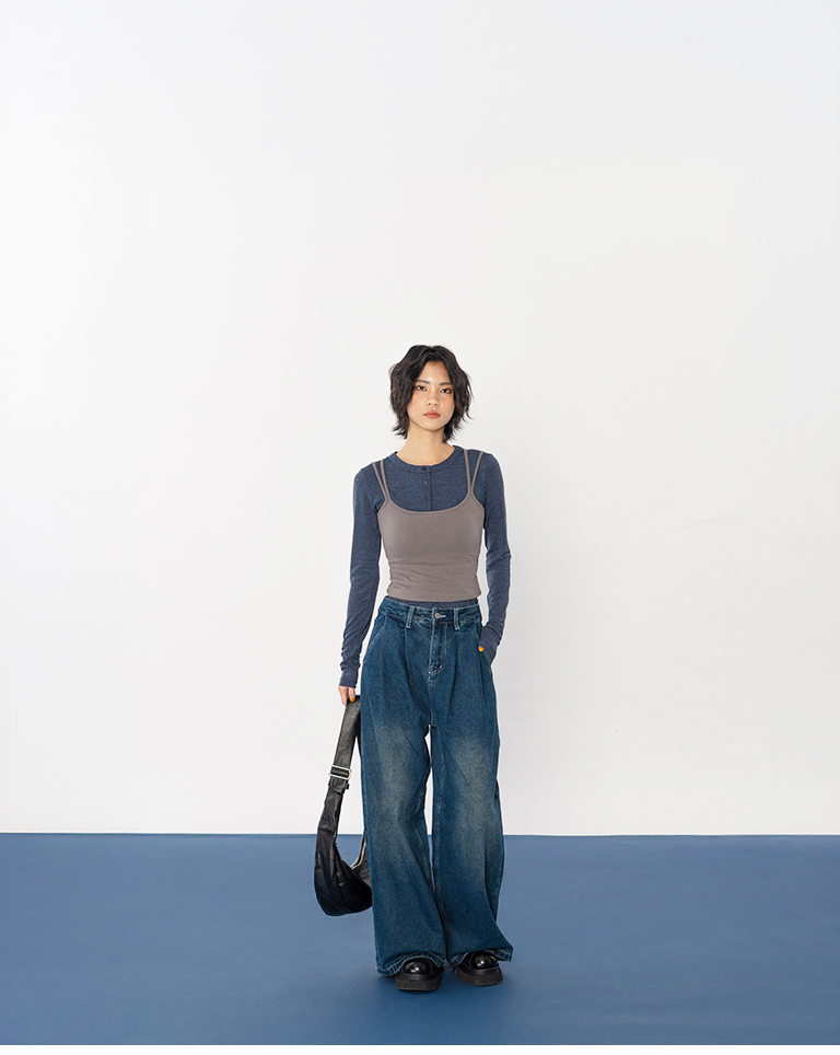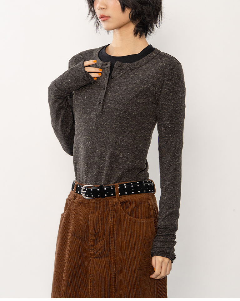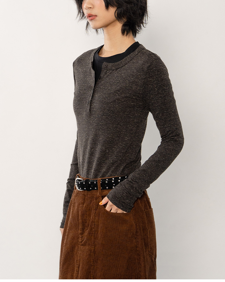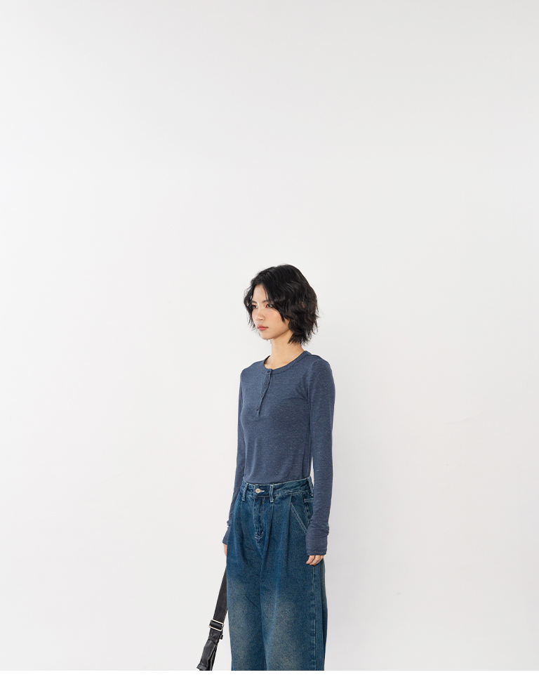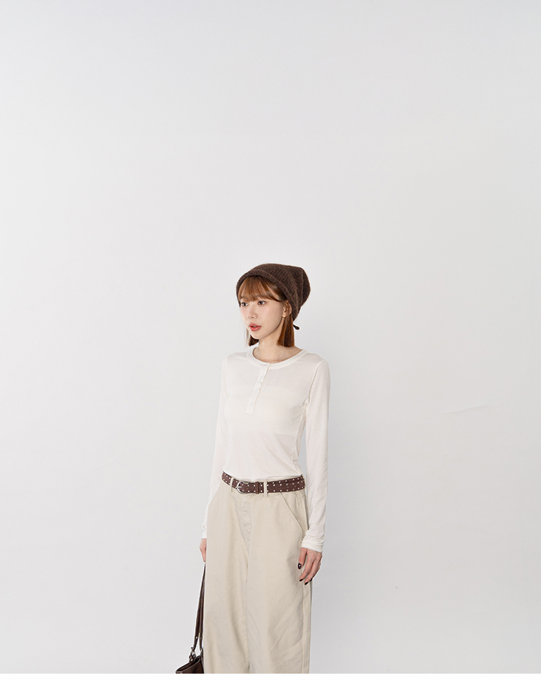 S~L身形實測!分尺寸皺皺木耳邊透膚高領長袖上衣