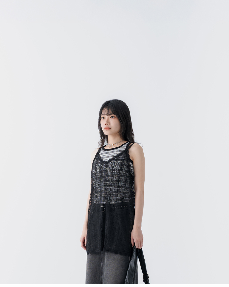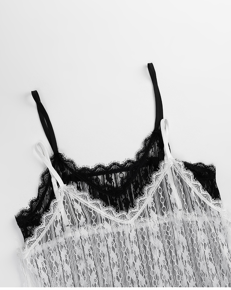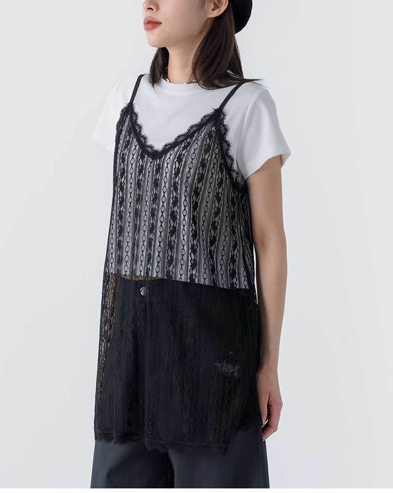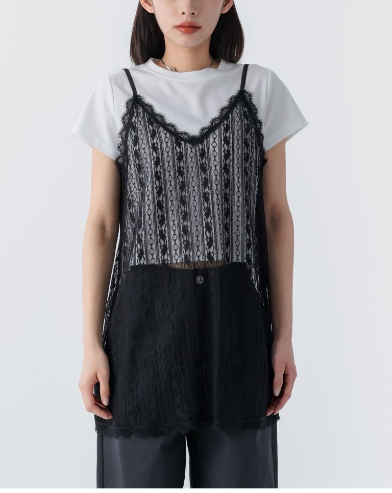 蕾絲透膚細肩帶背心罩衫 兩色售