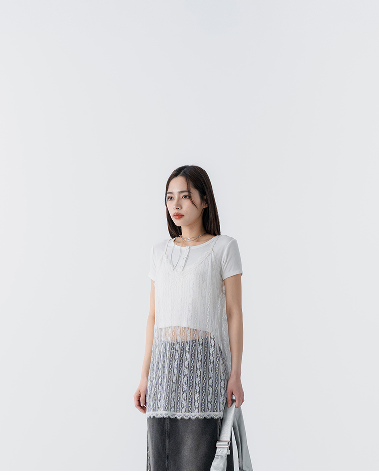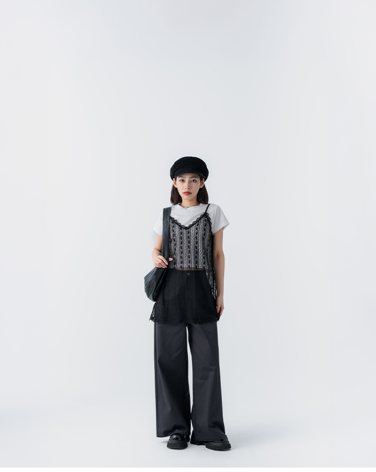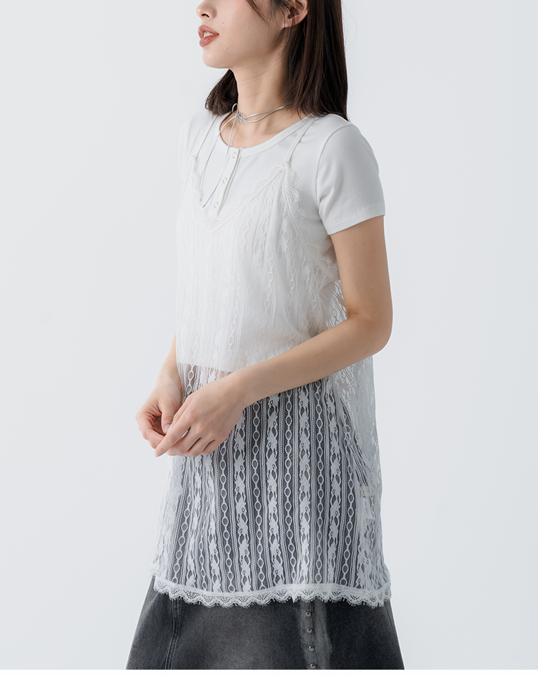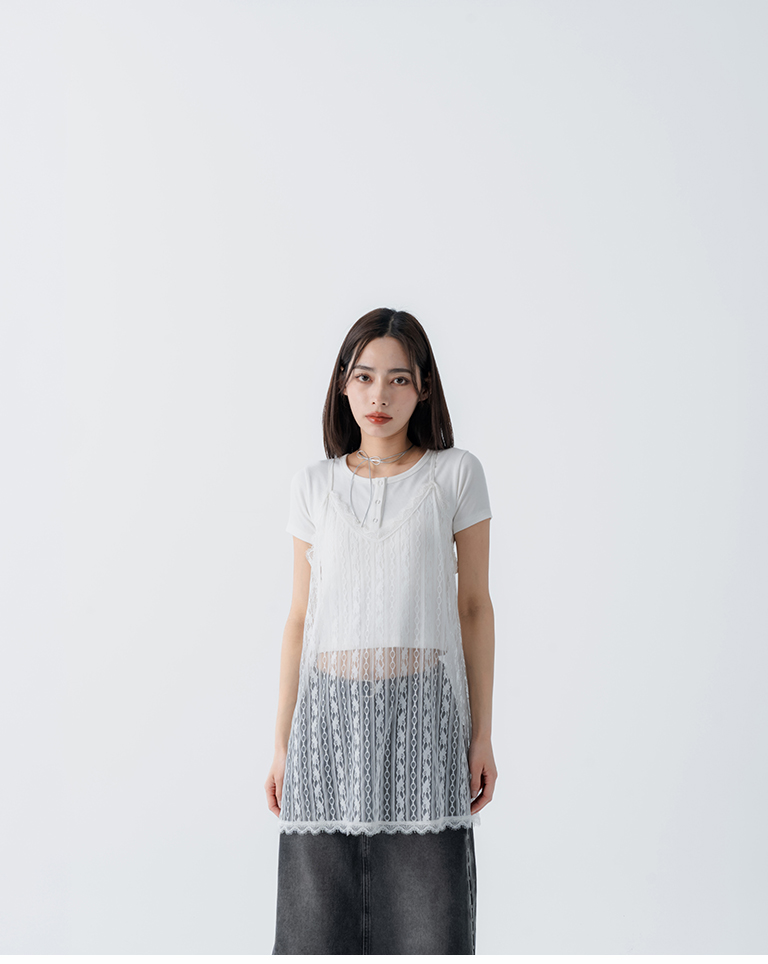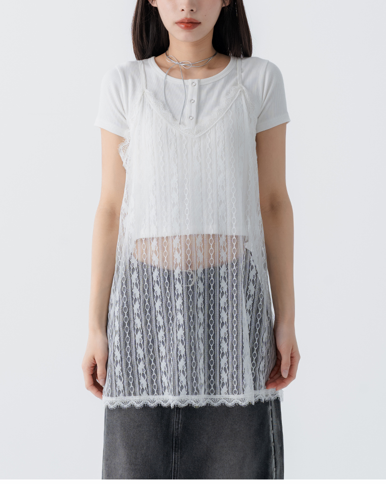 蕾絲透膚細肩帶背心罩衫 兩色售