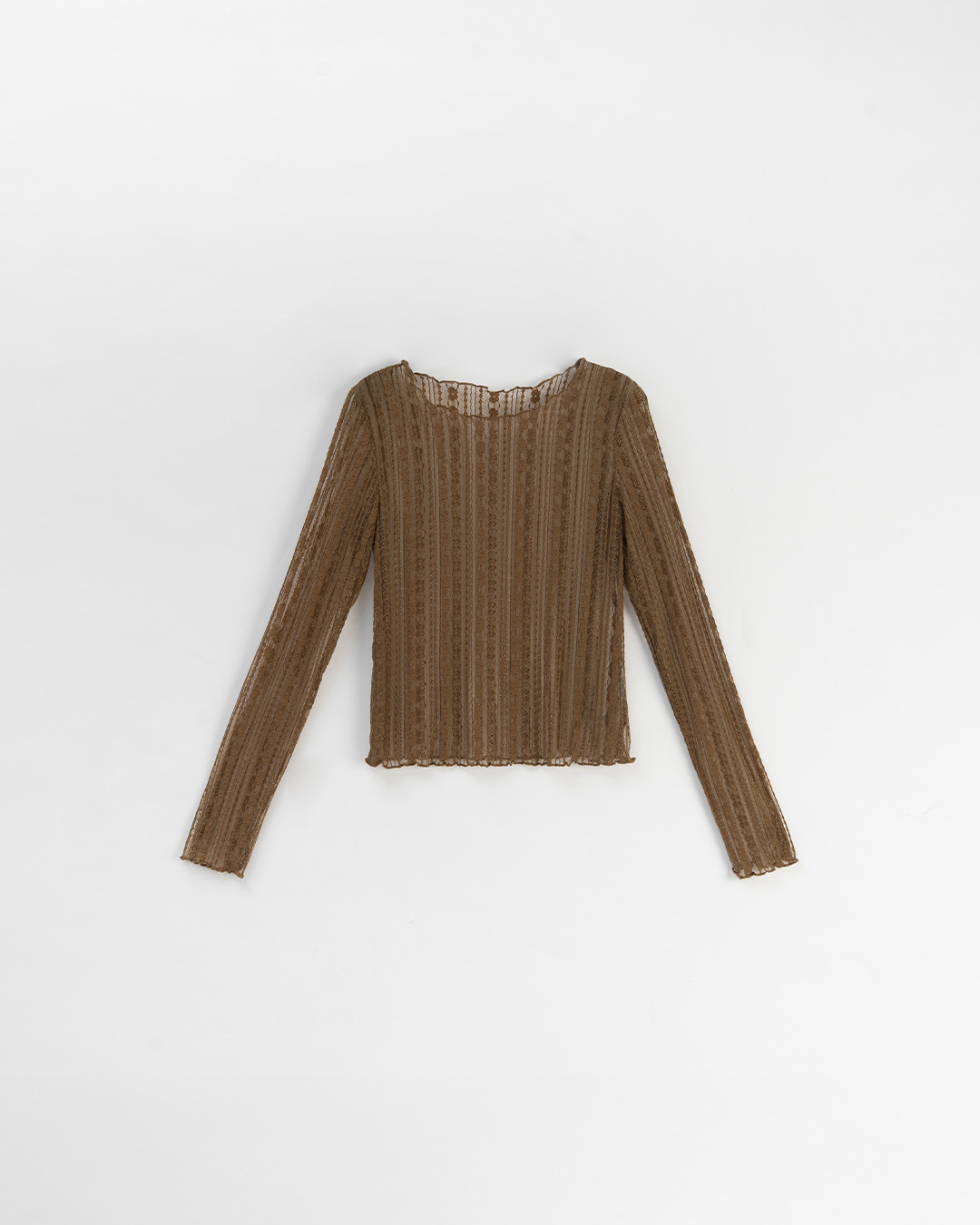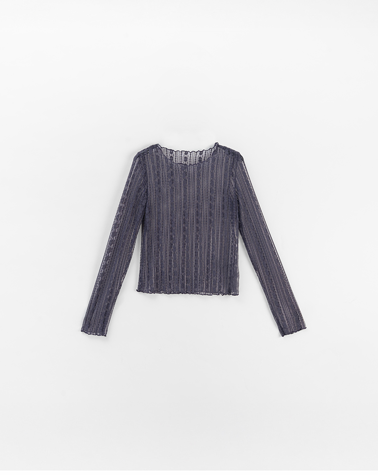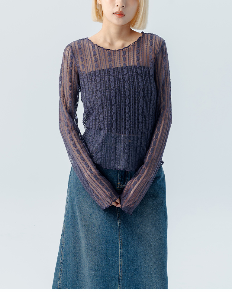 蕾絲透膚木耳邊設計上衣