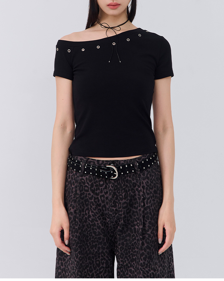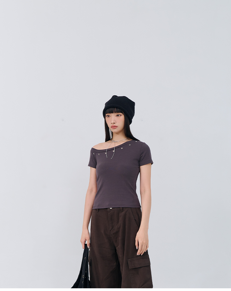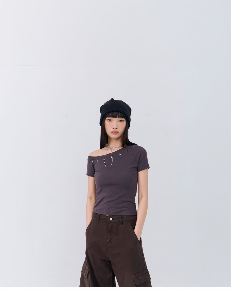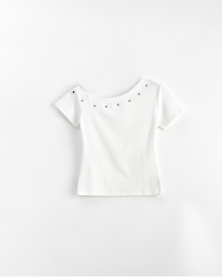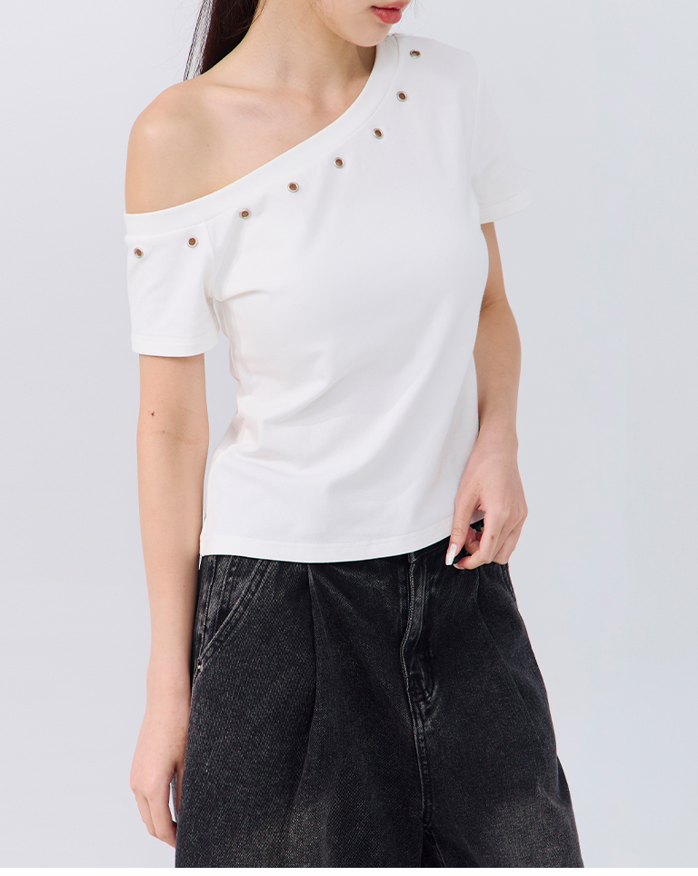 金屬釘釦設計斜肩上衣