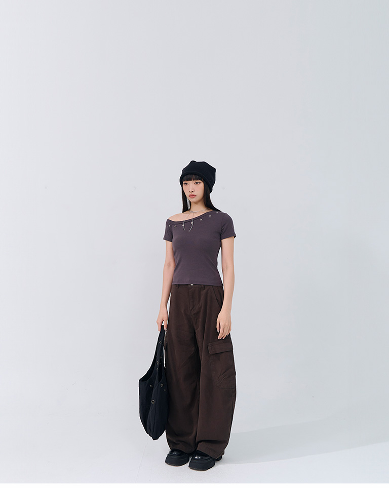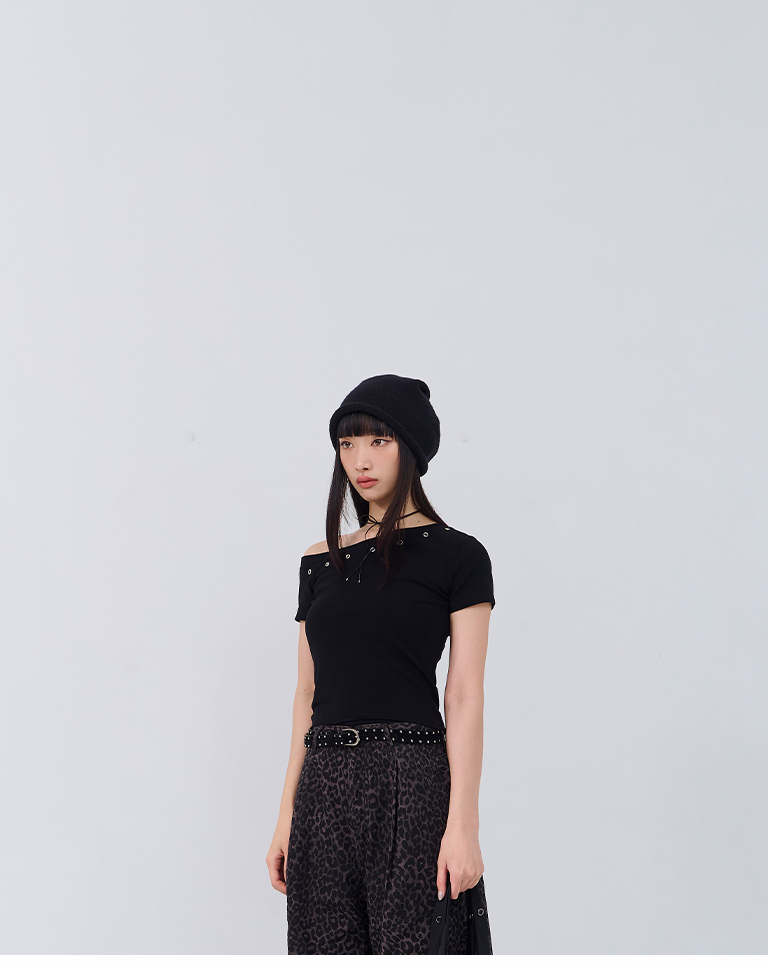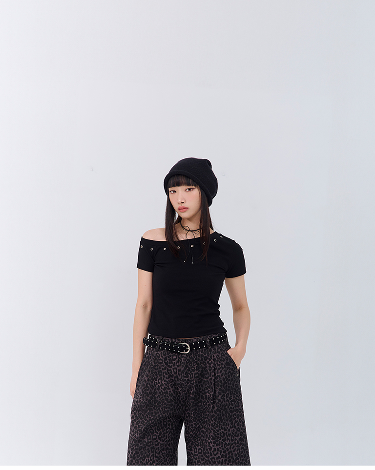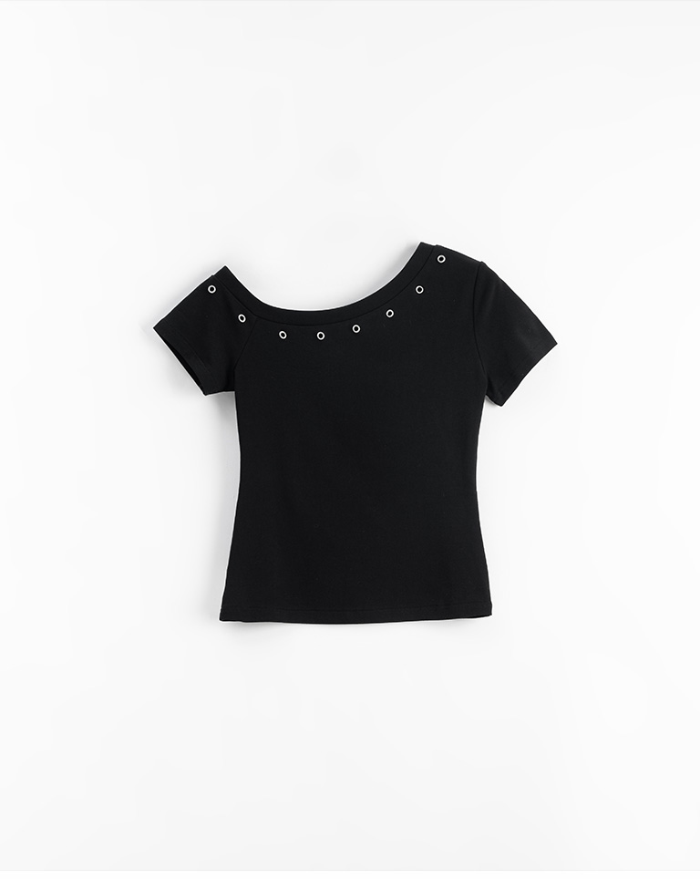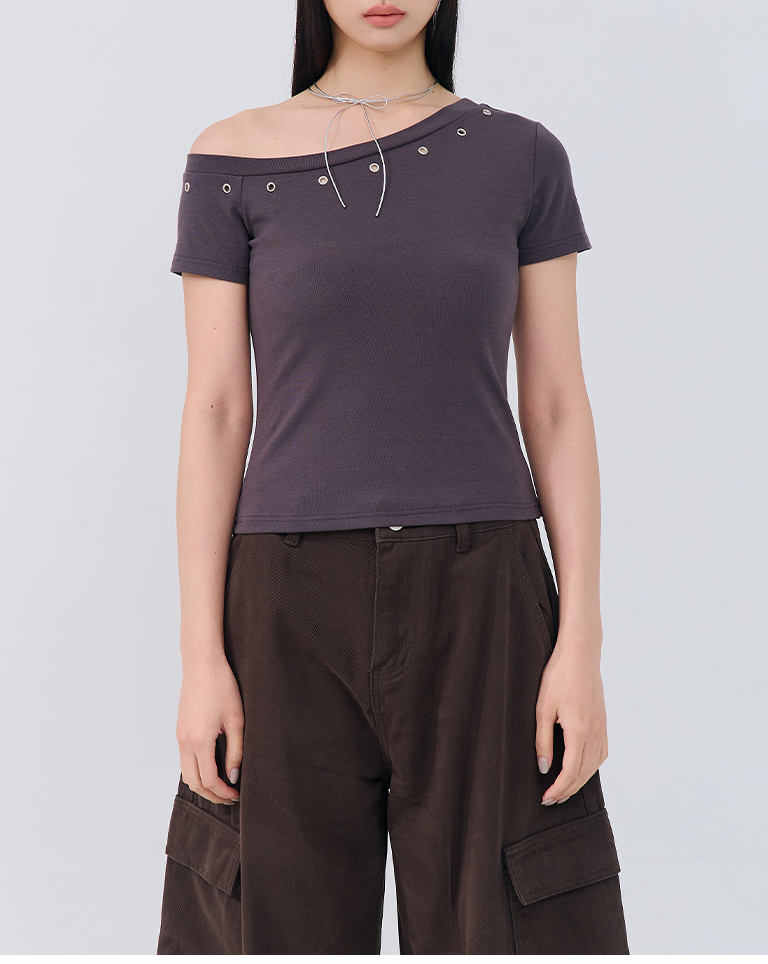 金屬釘釦設計斜肩上衣