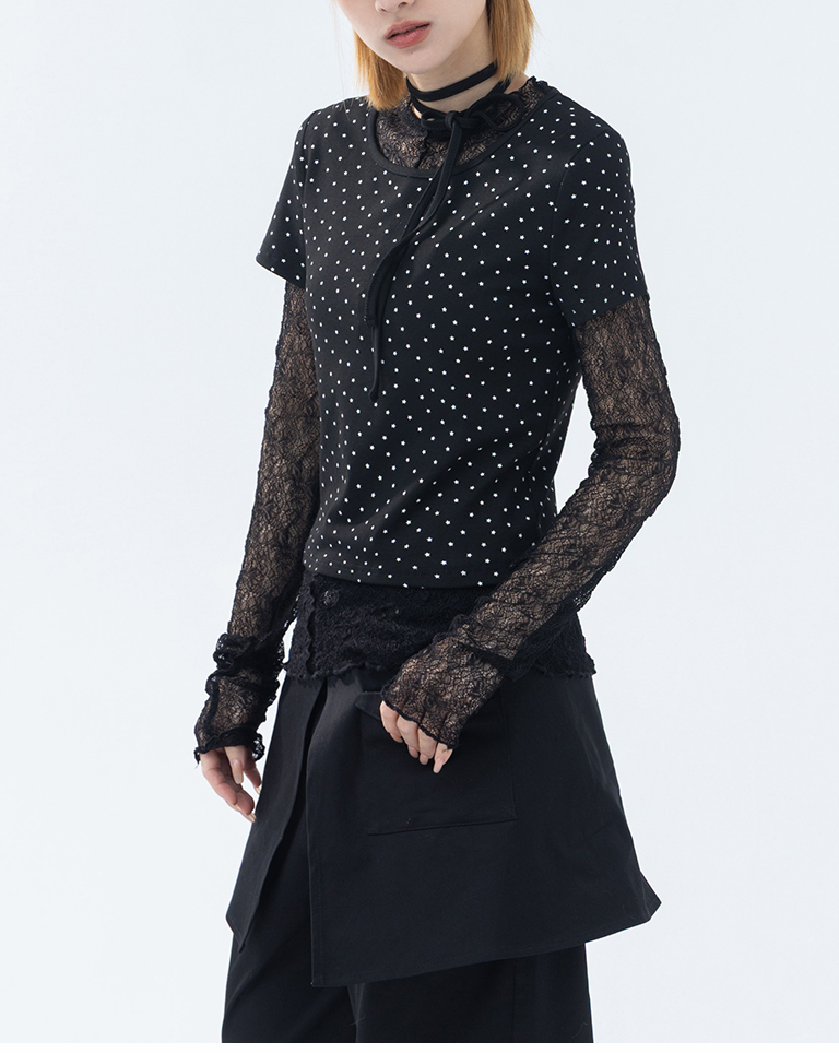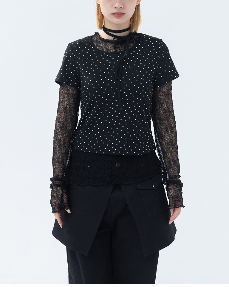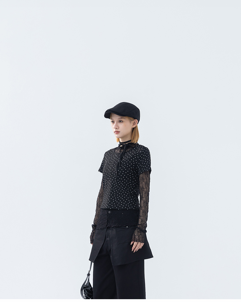 S~L身形實測!分尺寸皺皺木耳邊透膚高領長袖上衣