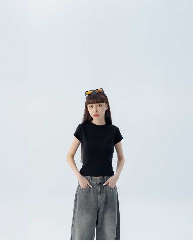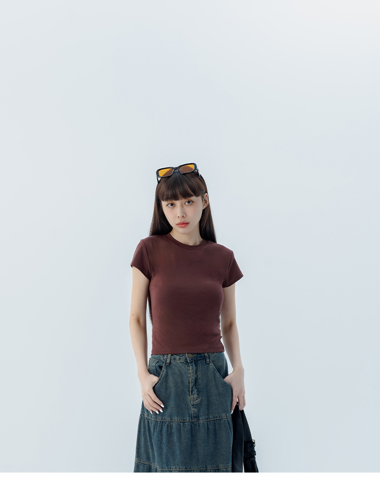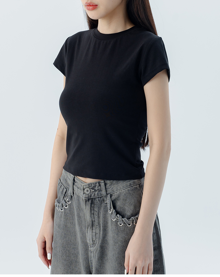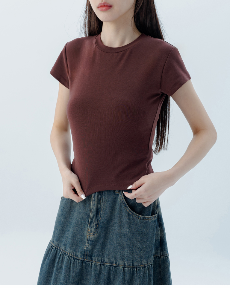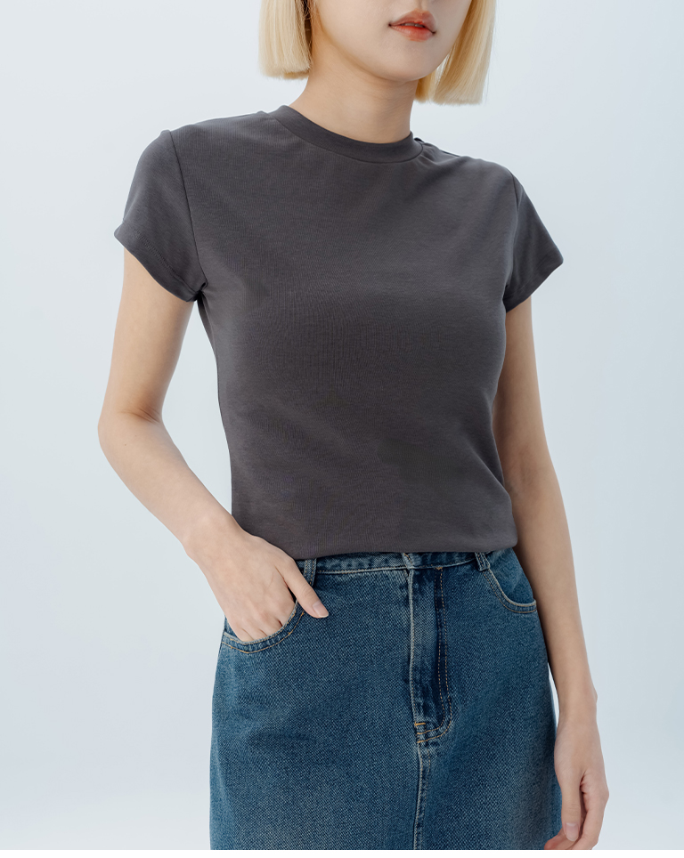 素面圓領彈力合身上衣