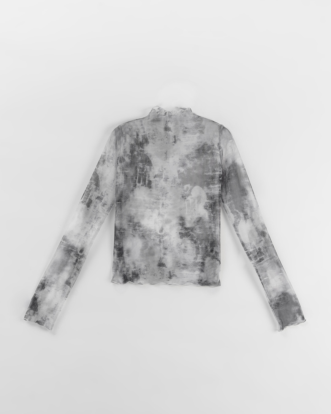 S~L身形實測!分尺寸皺皺木耳邊透膚高領長袖上衣