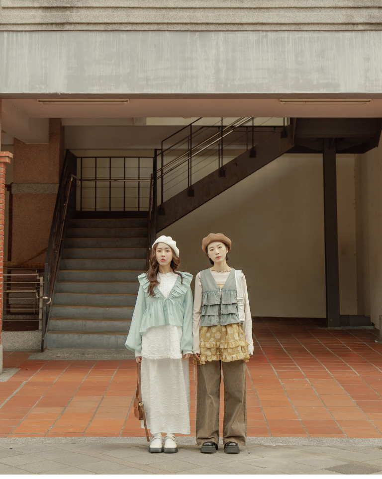 S~L身形實測!分尺寸皺皺木耳邊透膚高領長袖上衣