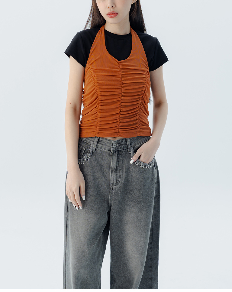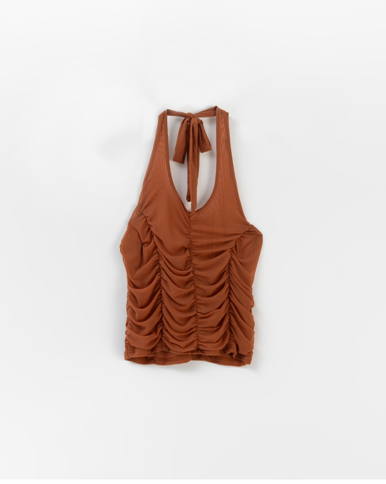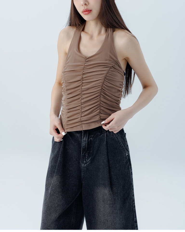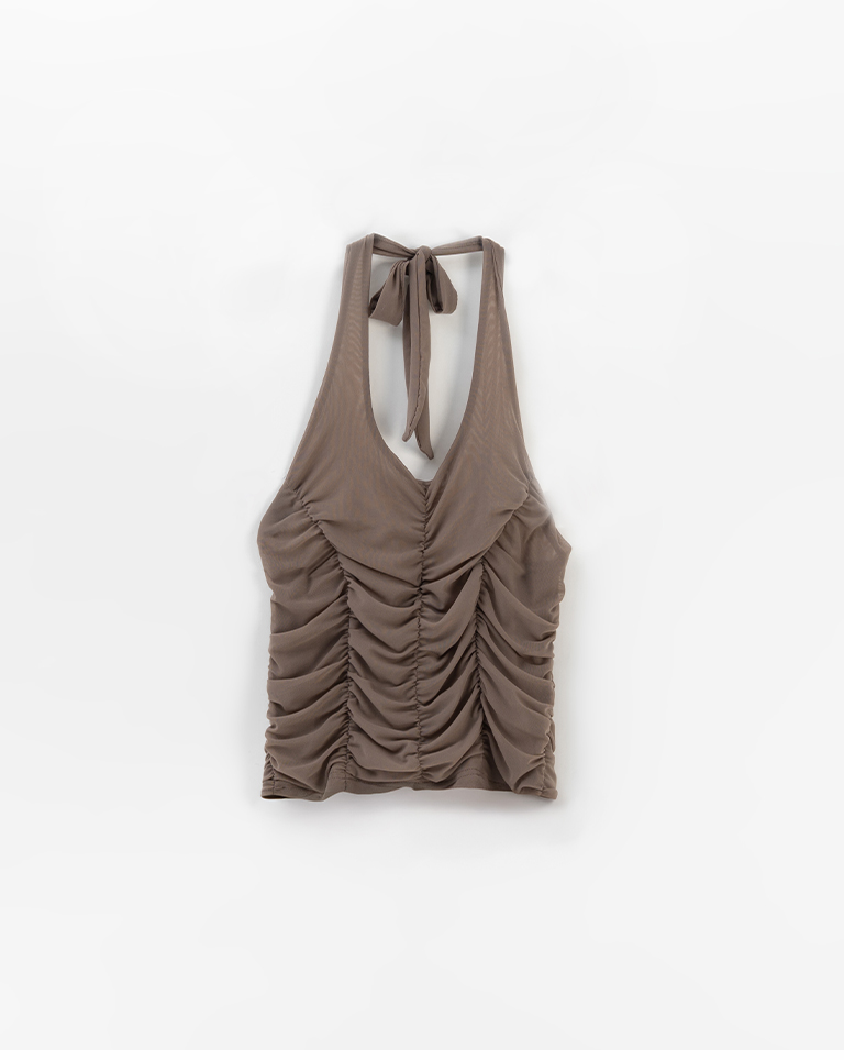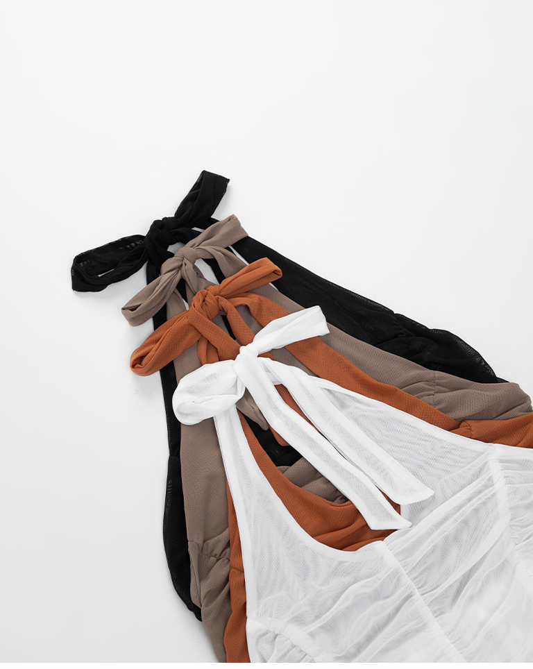 皺皺網紗綁帶繞脖罩衫背心