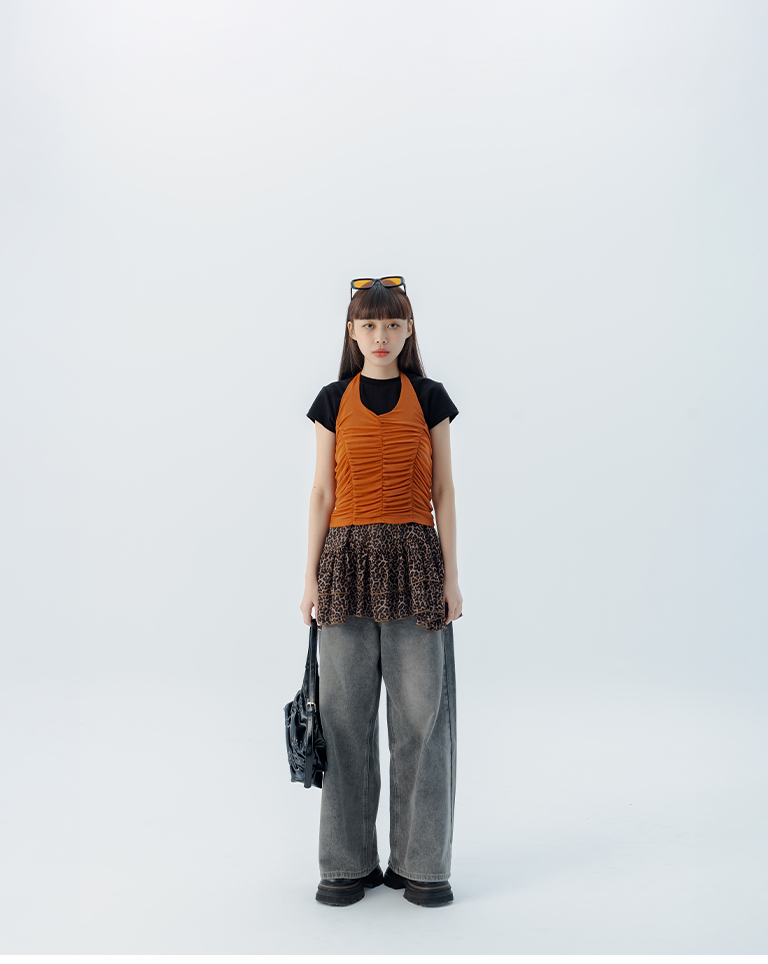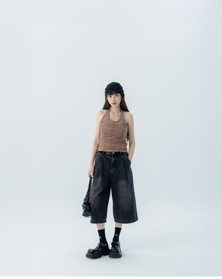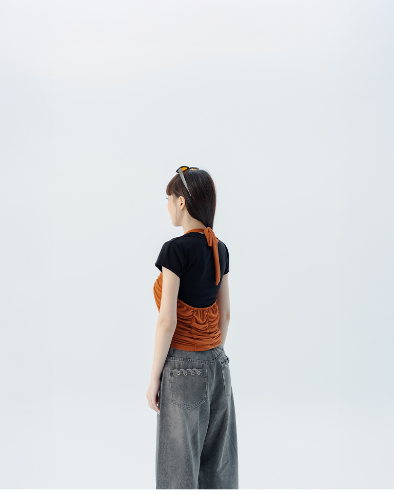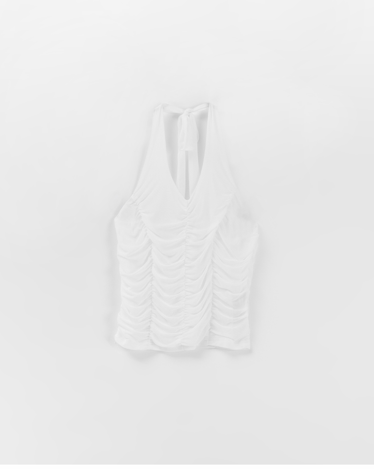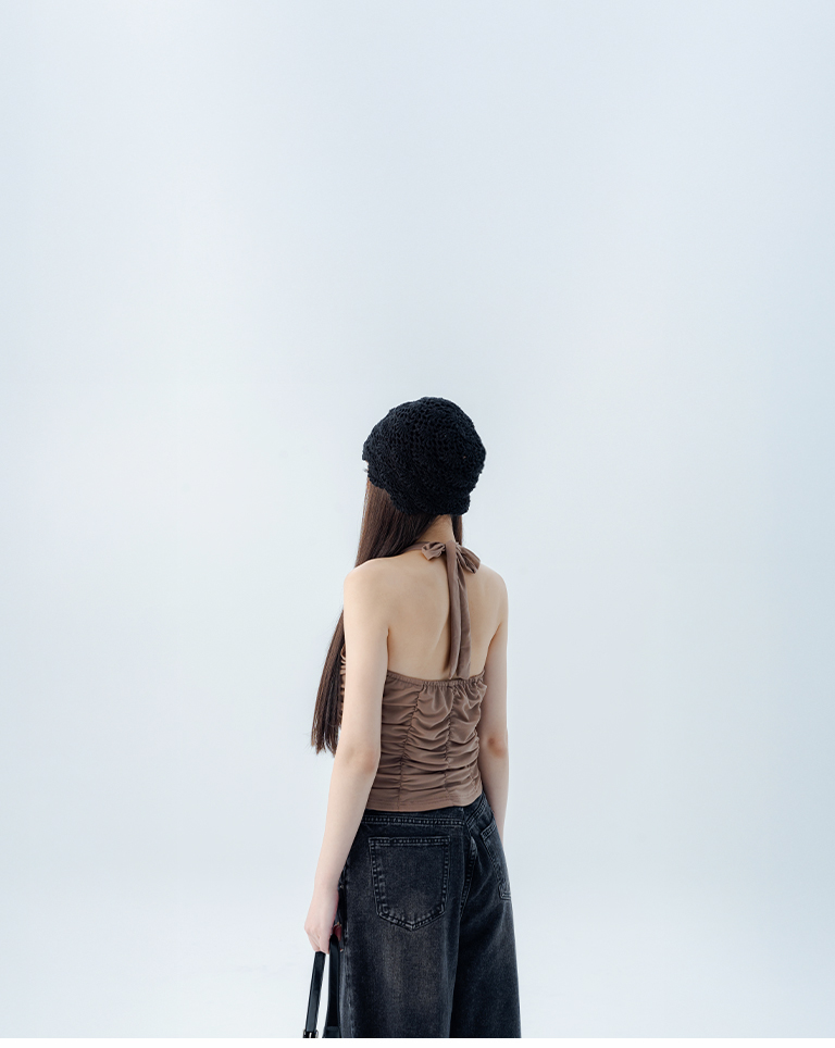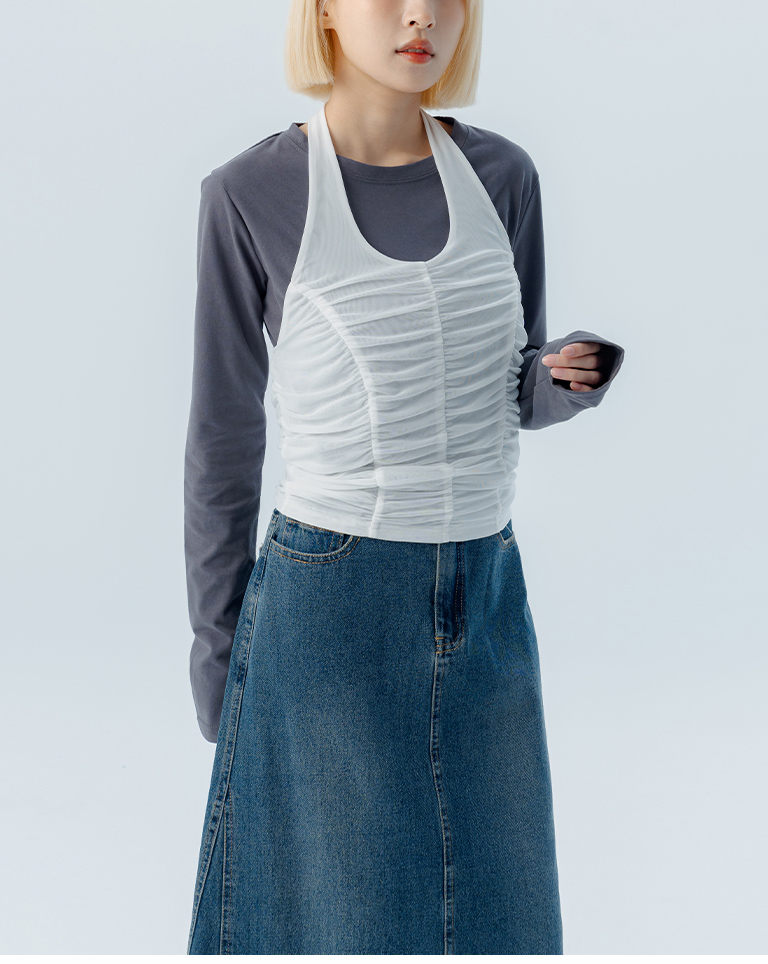 皺皺網紗綁帶繞脖罩衫背心