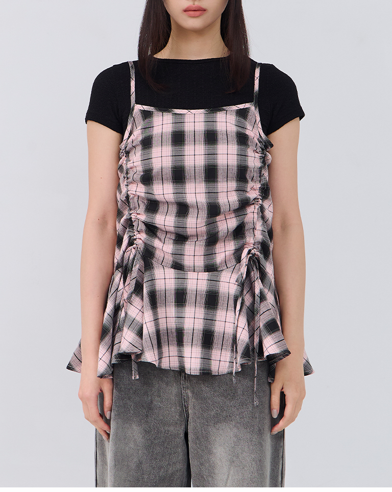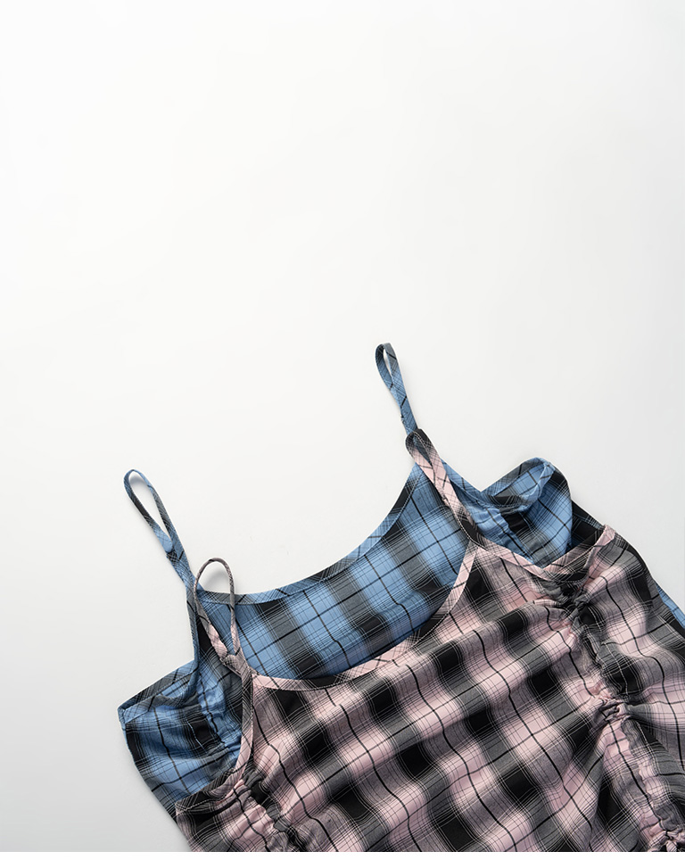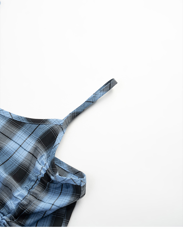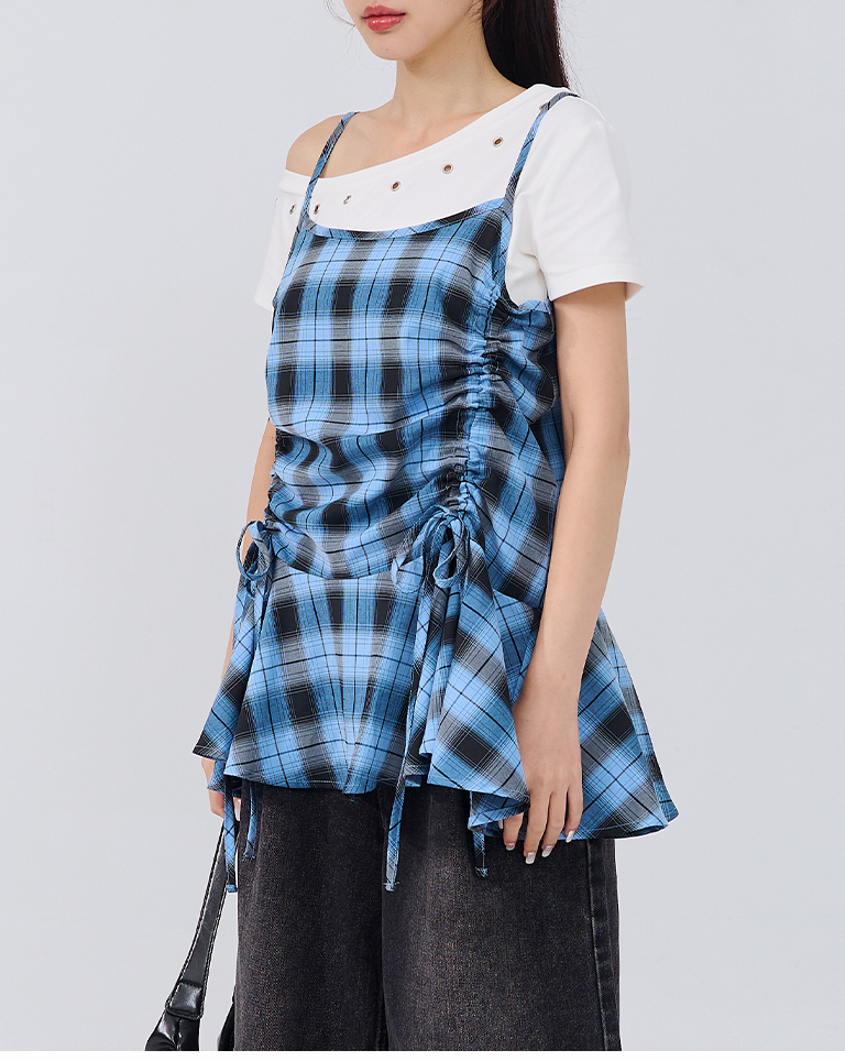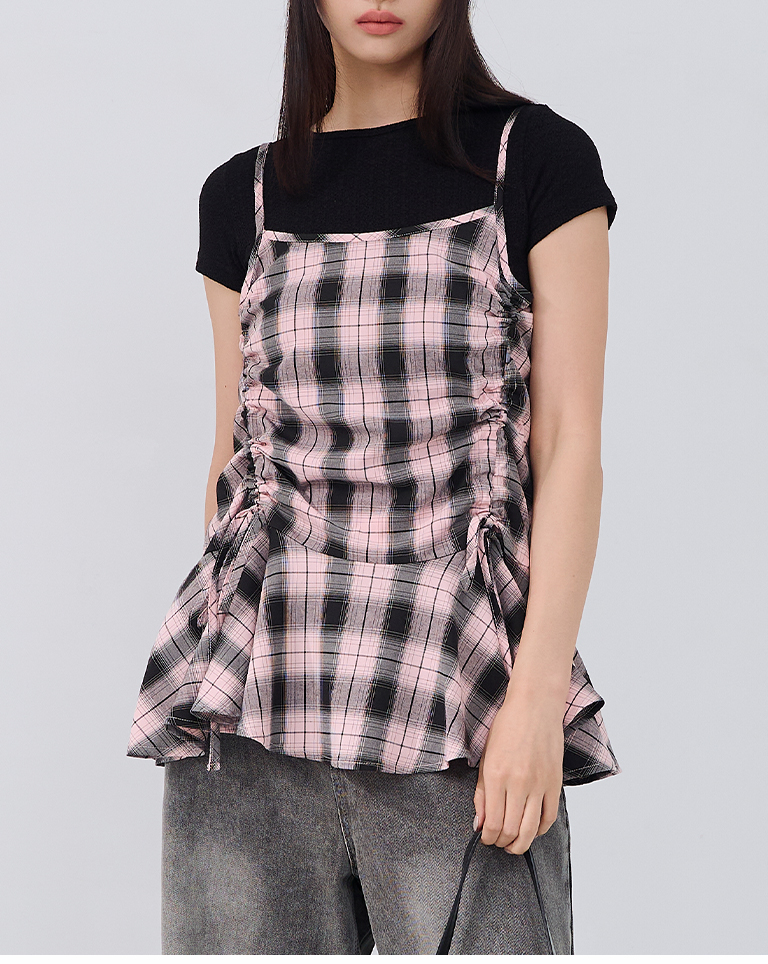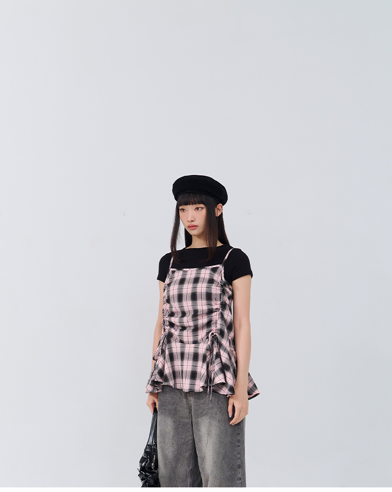 配色格紋抽繩細肩罩衫背心 兩色售