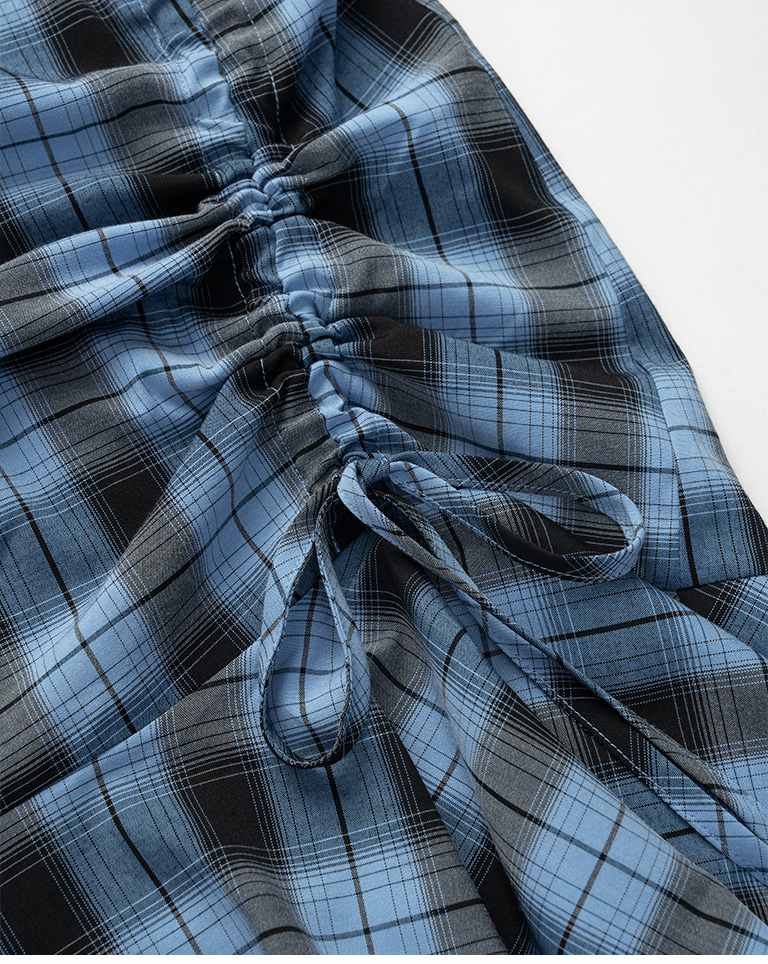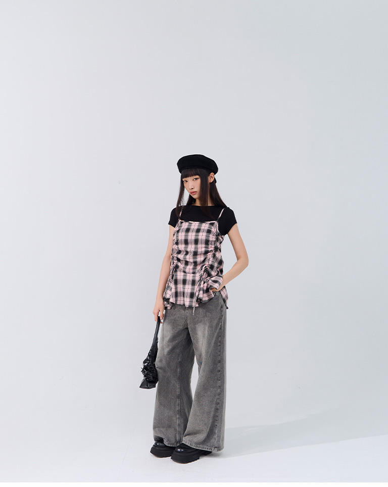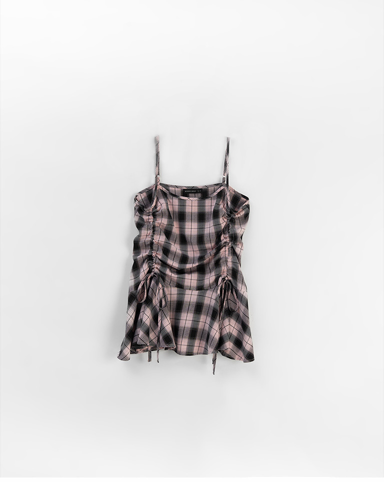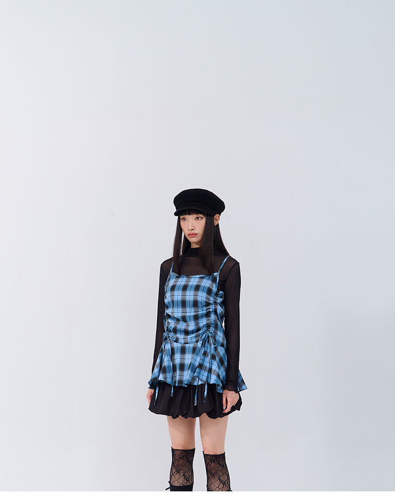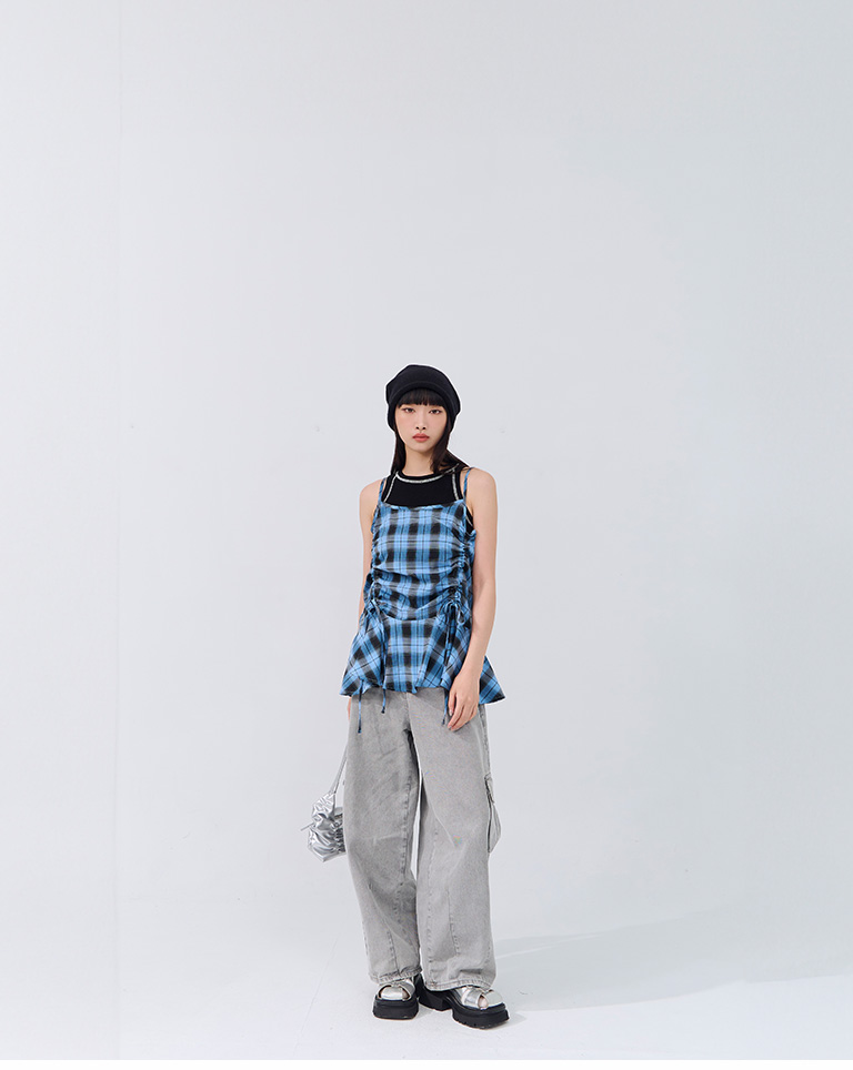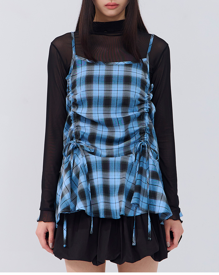 配色格紋抽繩細肩罩衫背心 兩色售