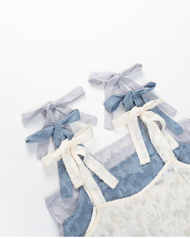 緹花透膚肩蝴蝶結綁帶罩衫背心 三色售