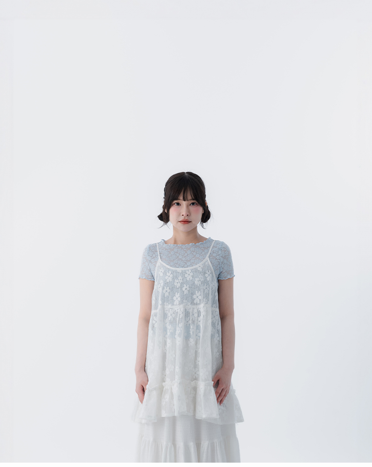 鏤空緹花荷葉下擺細肩罩衫背心