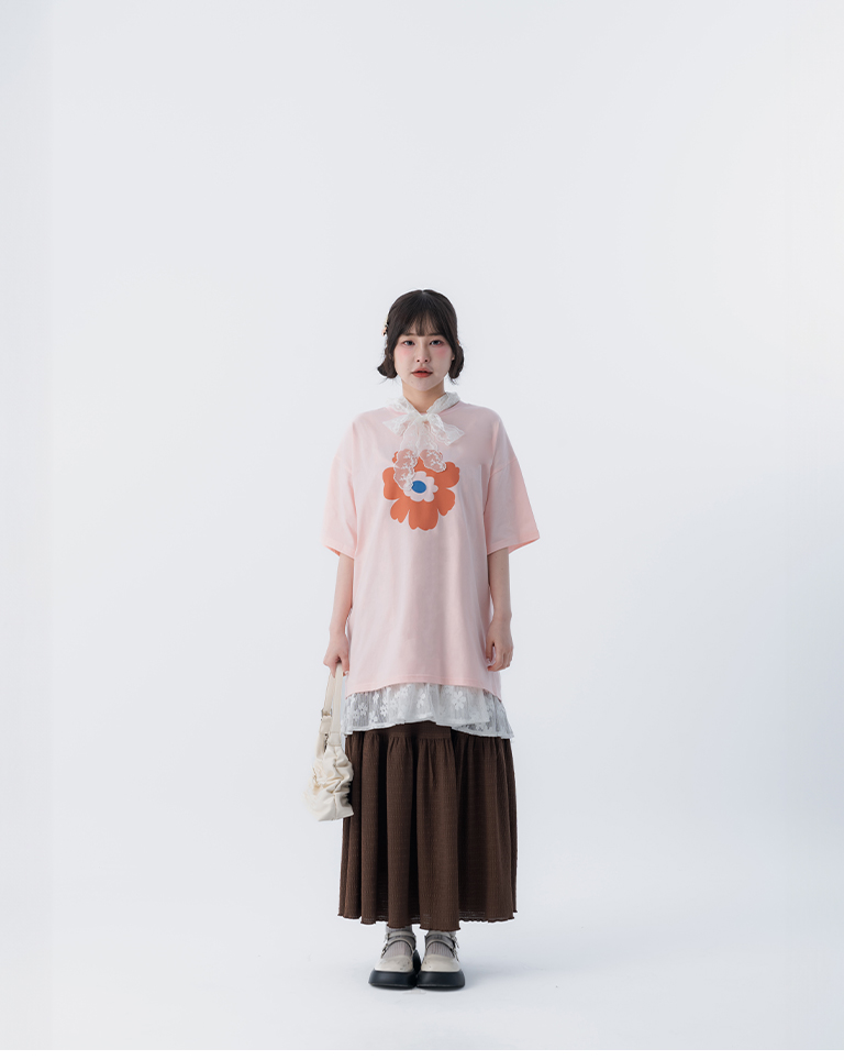 下擺荷葉剪接設計 層次感十足