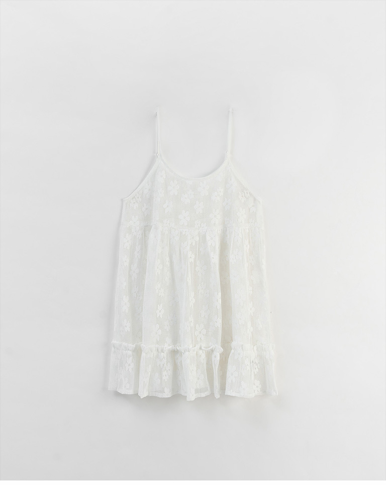 鏤空緹花荷葉下擺細肩罩衫背心-白