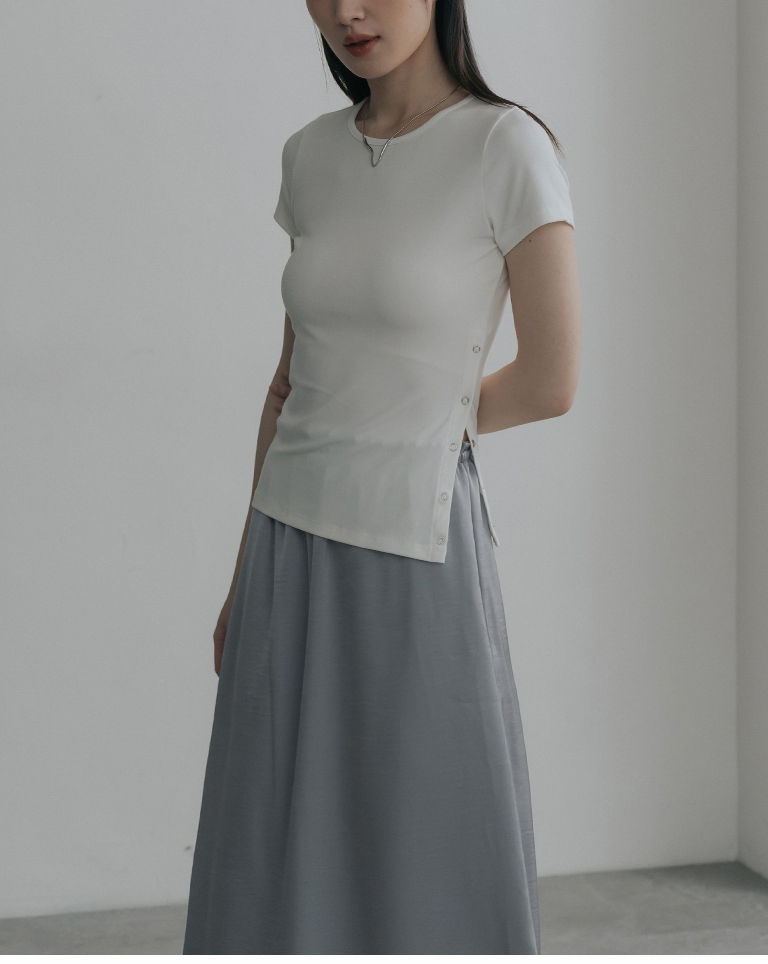 S~L身形實測!分尺寸皺皺木耳邊透膚高領長袖上衣