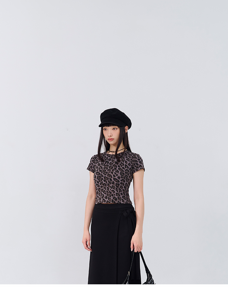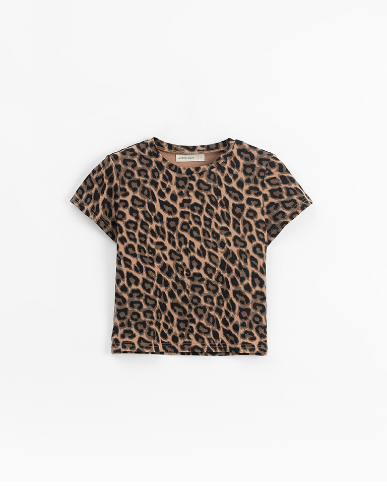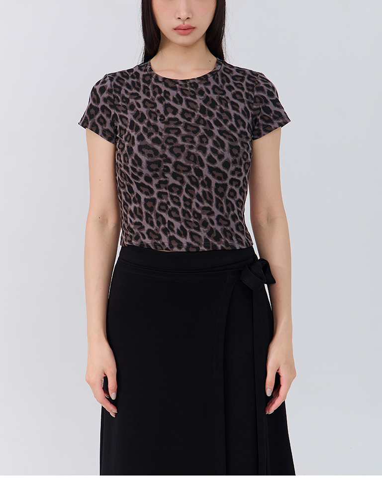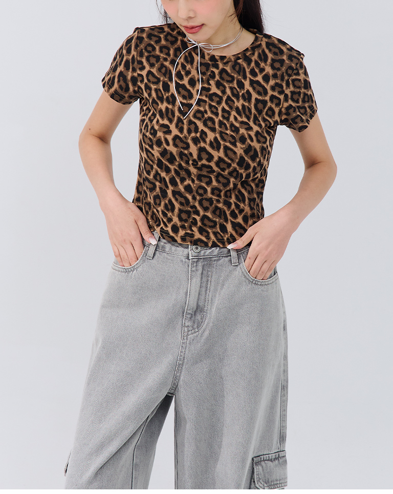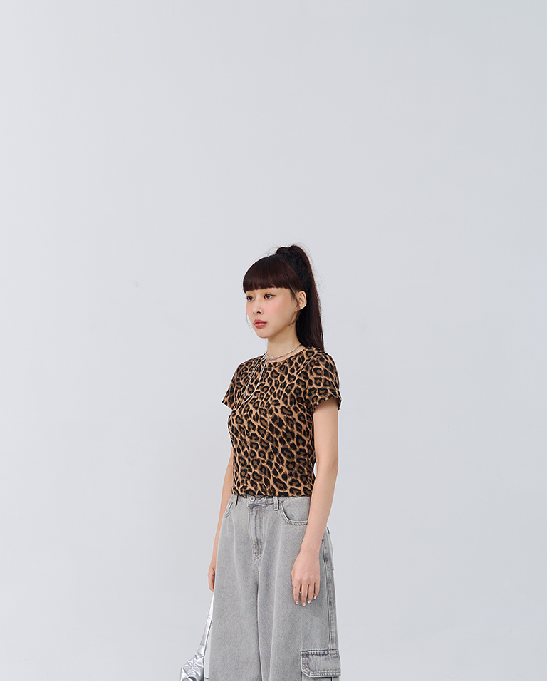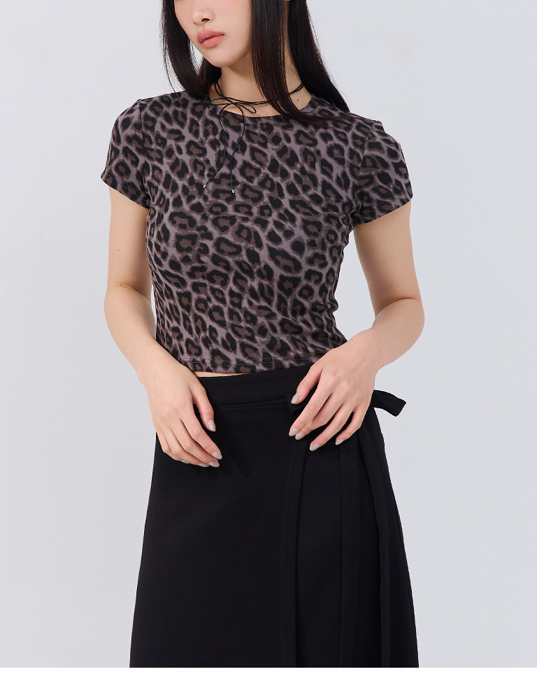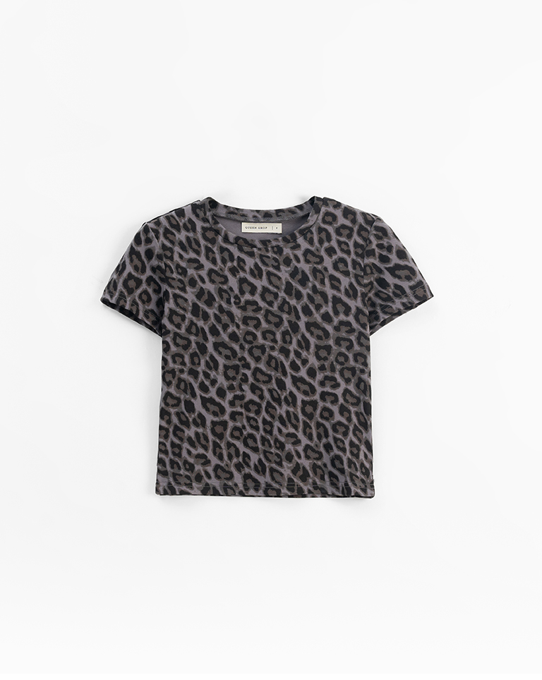 豹紋印圖造型合身短袖上衣