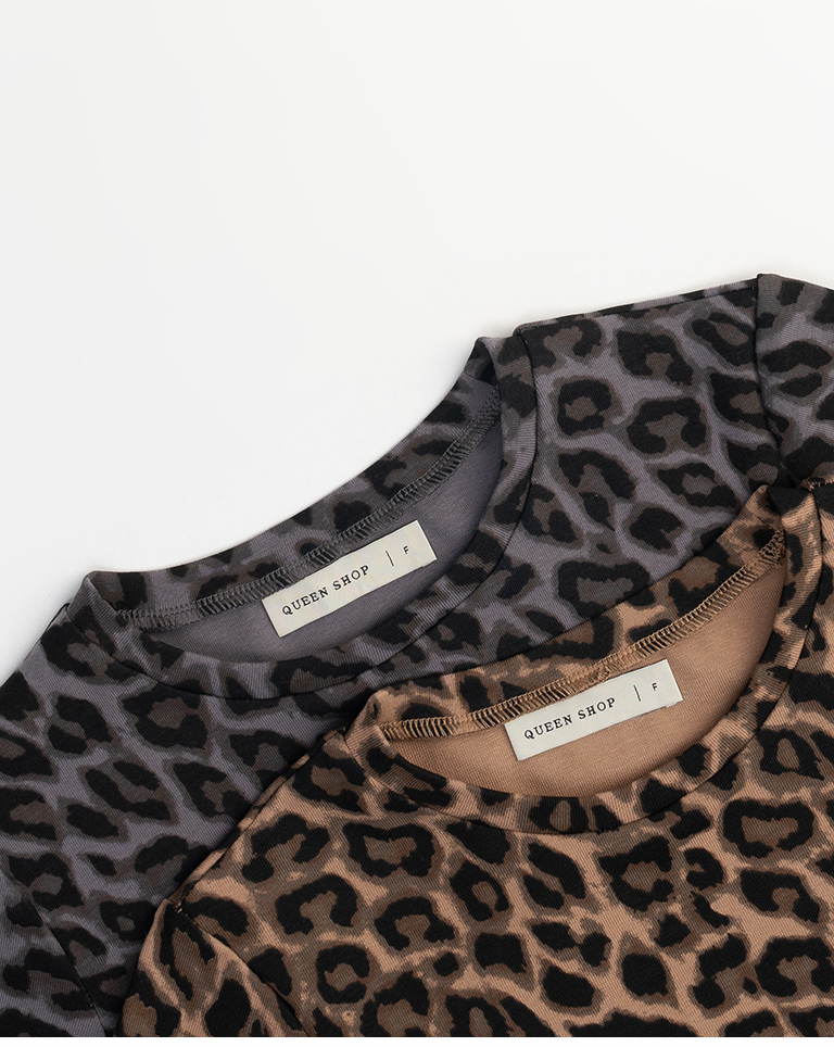 豹紋印圖造型合身短袖上衣 兩色售 S/M
