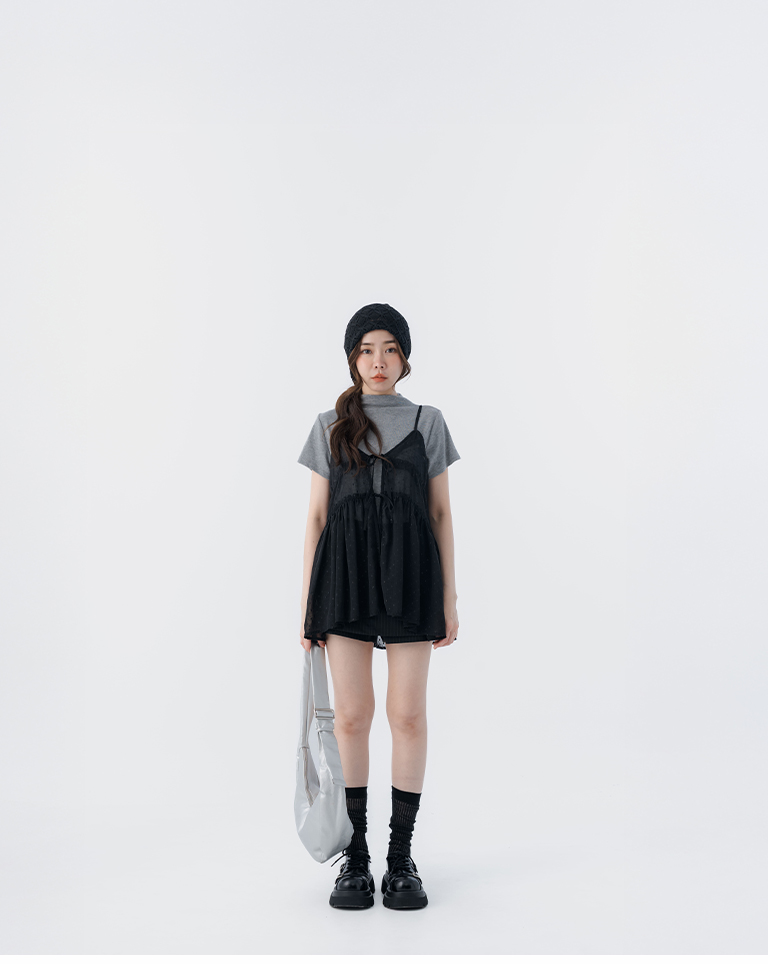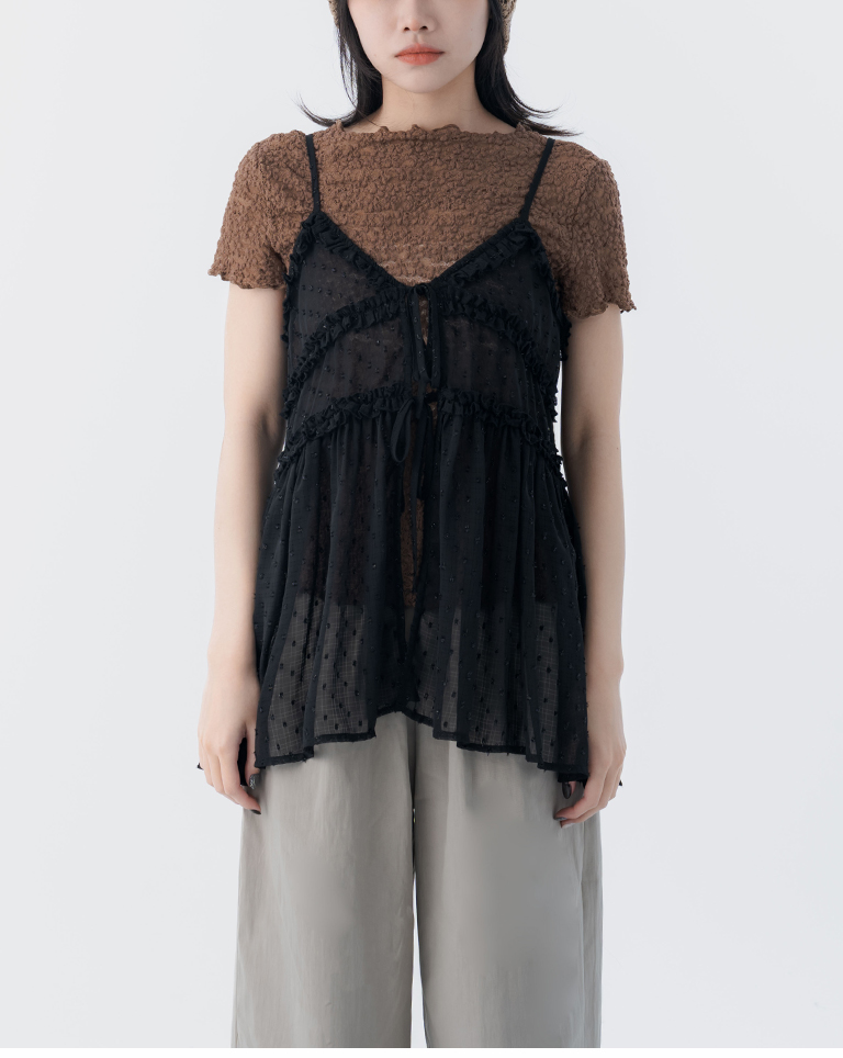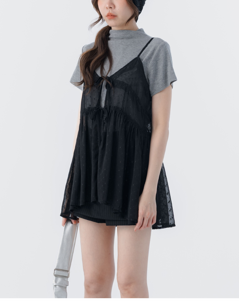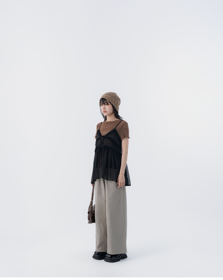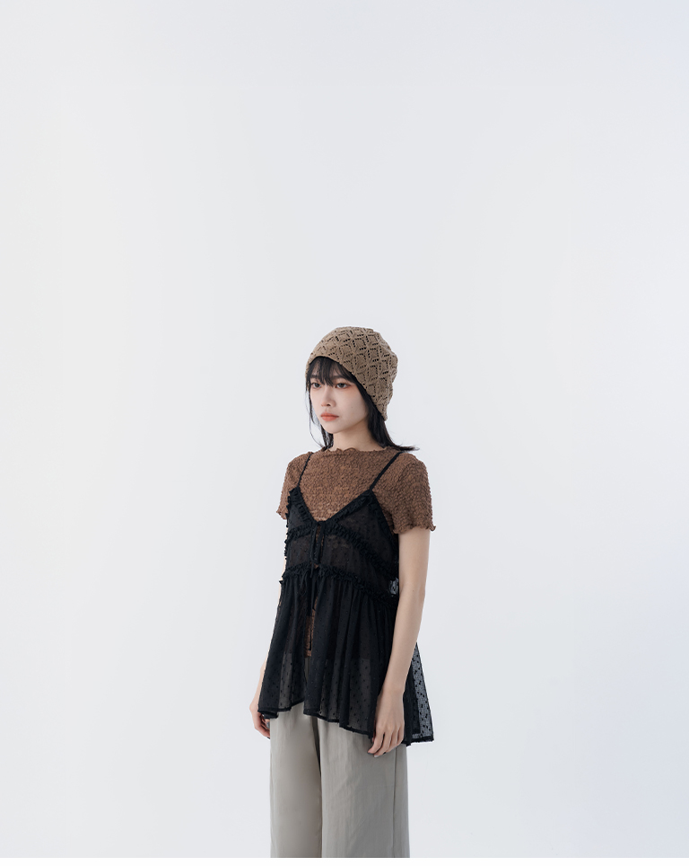 S~L身形實測!分尺寸皺皺木耳邊透膚高領長袖上衣
