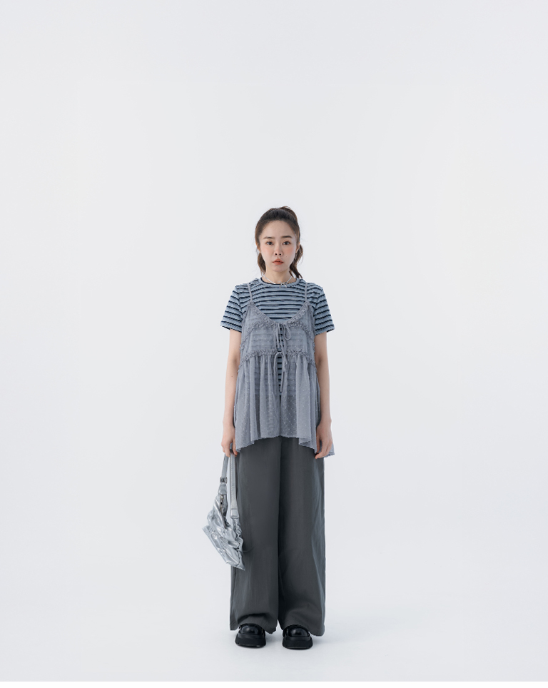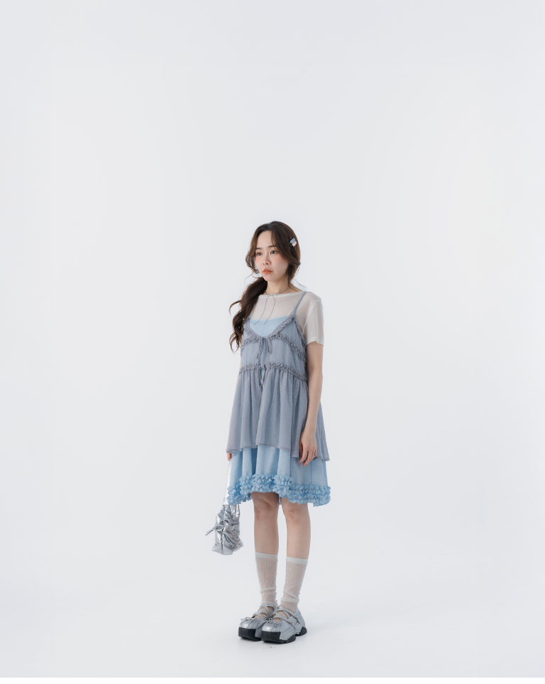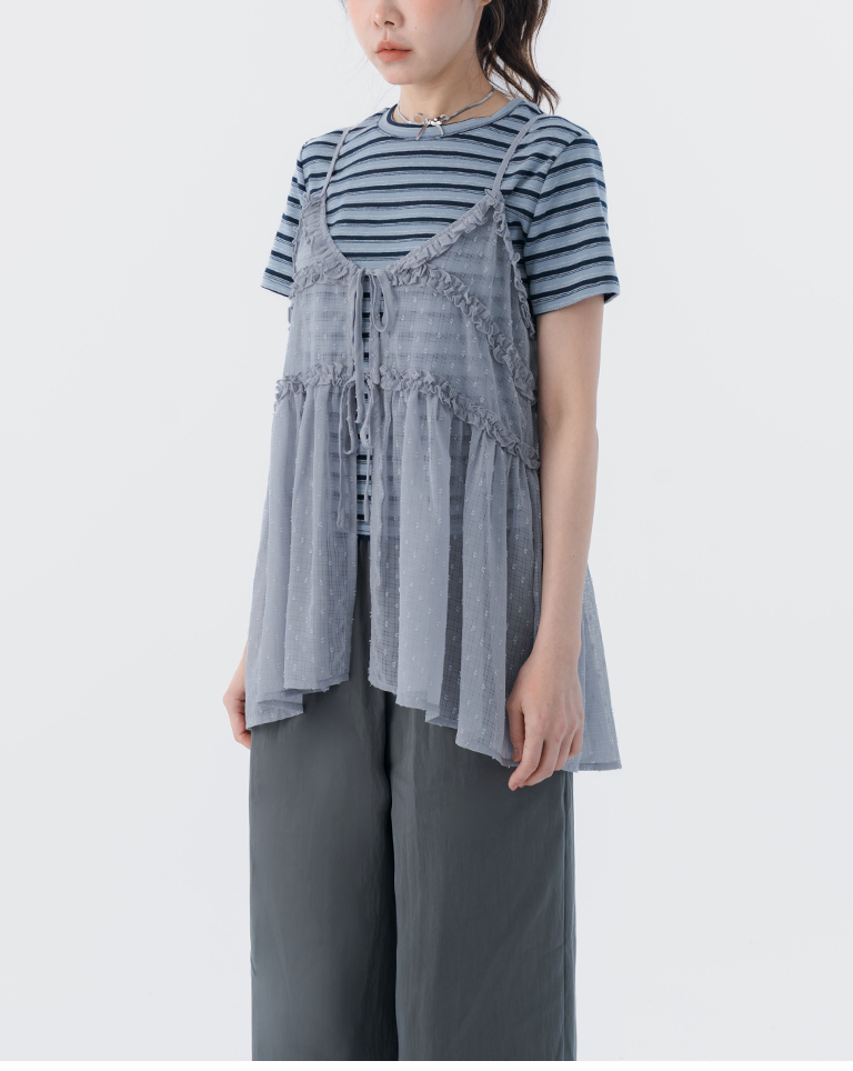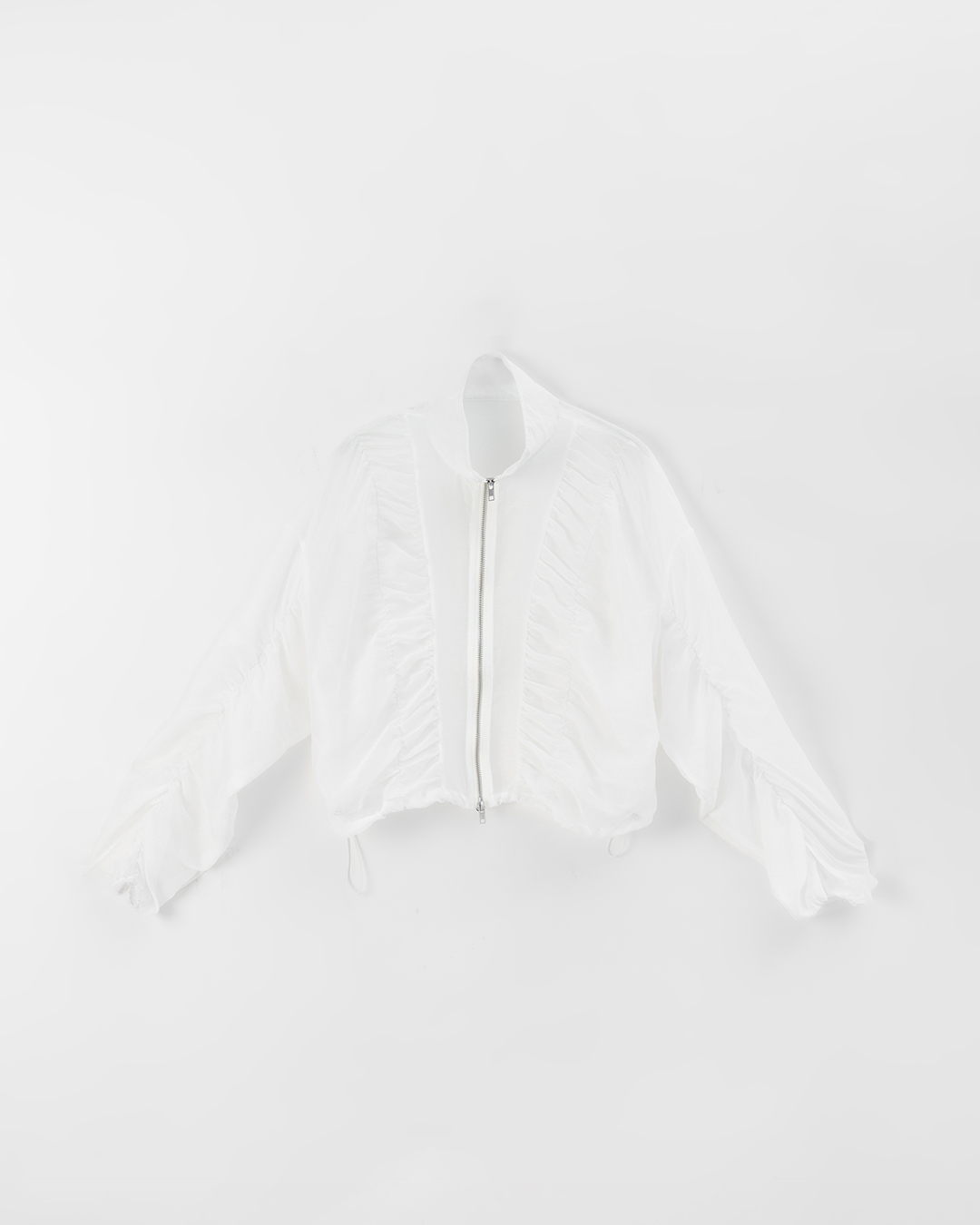 S~L身形實測!分尺寸皺皺木耳邊透膚高領長袖上衣