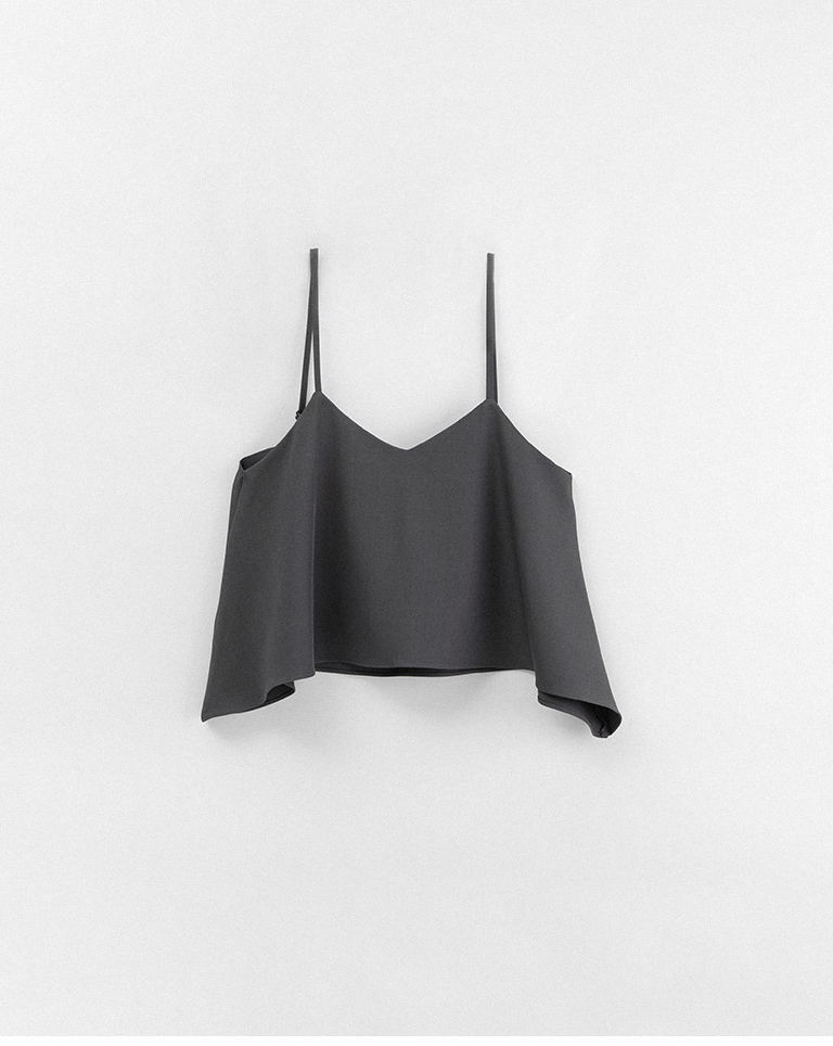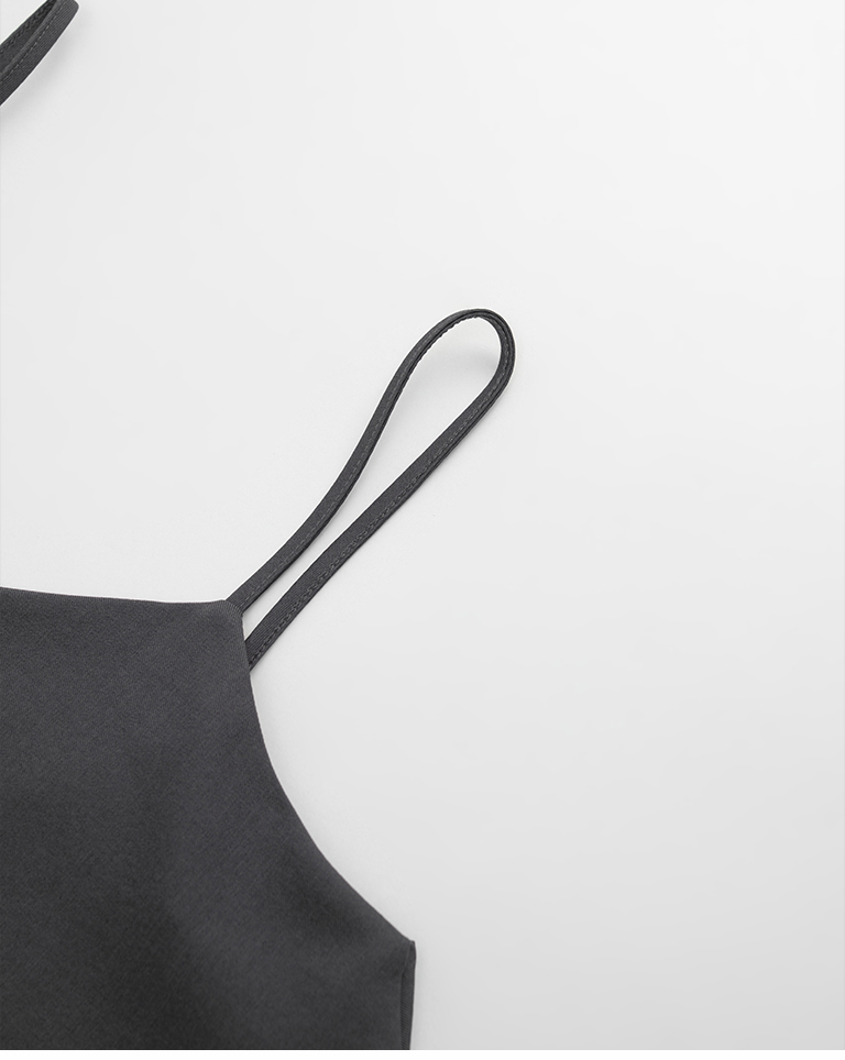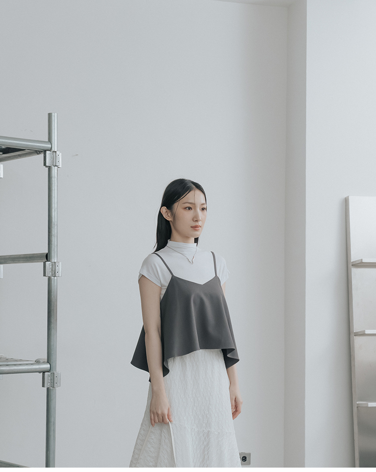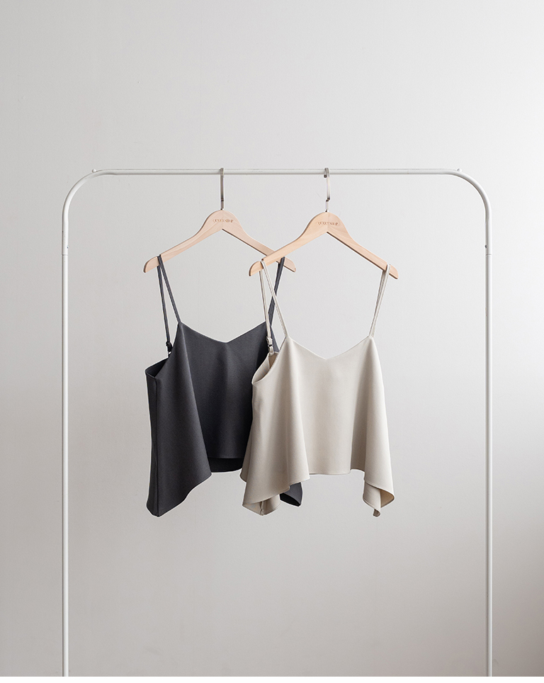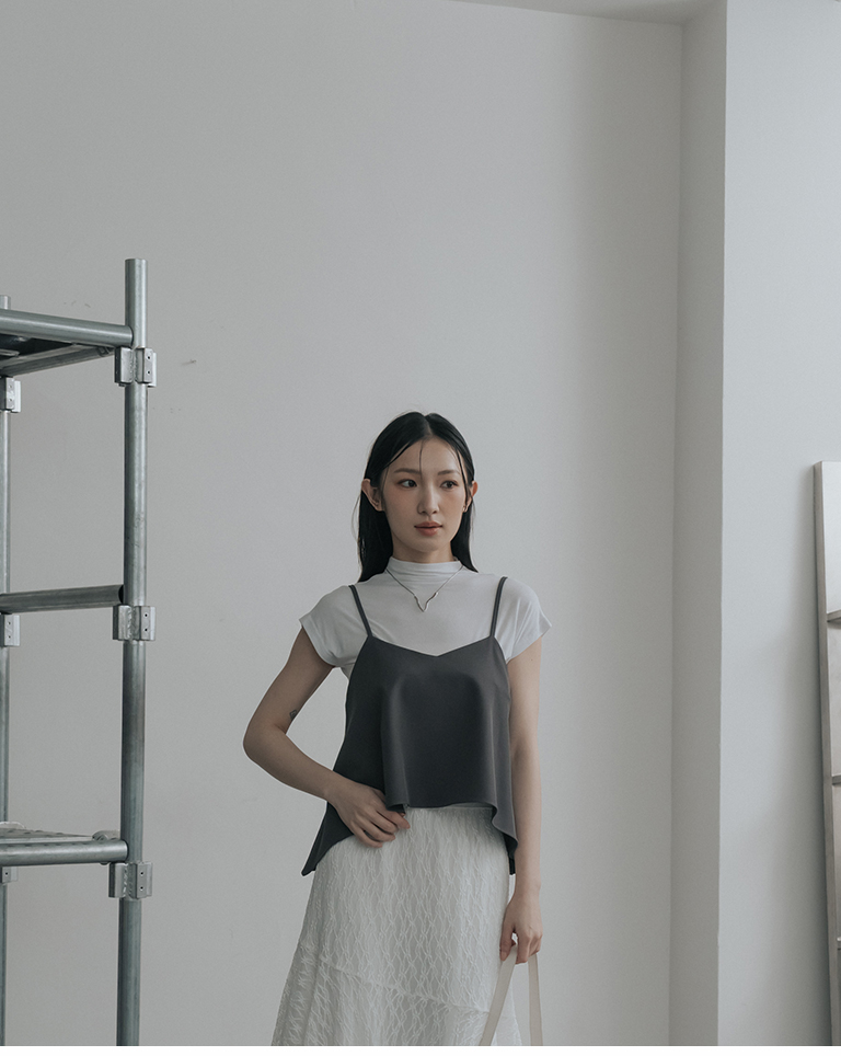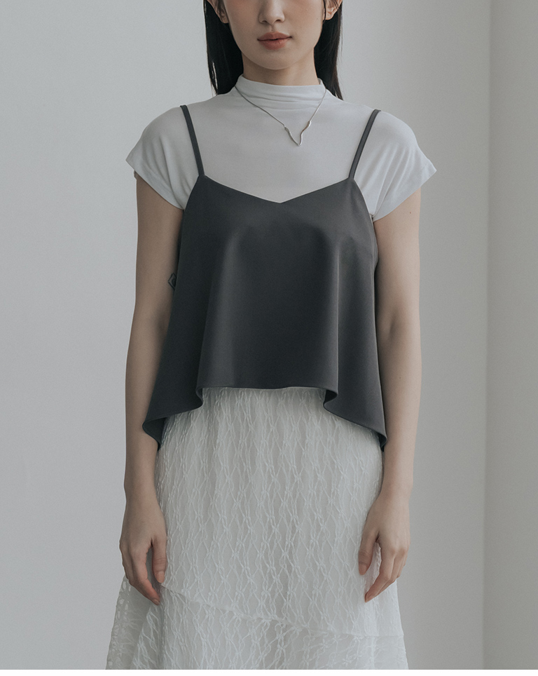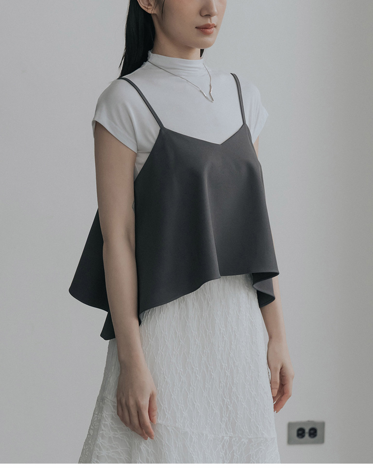 V領不規則傘擺細肩罩衫背心-灰