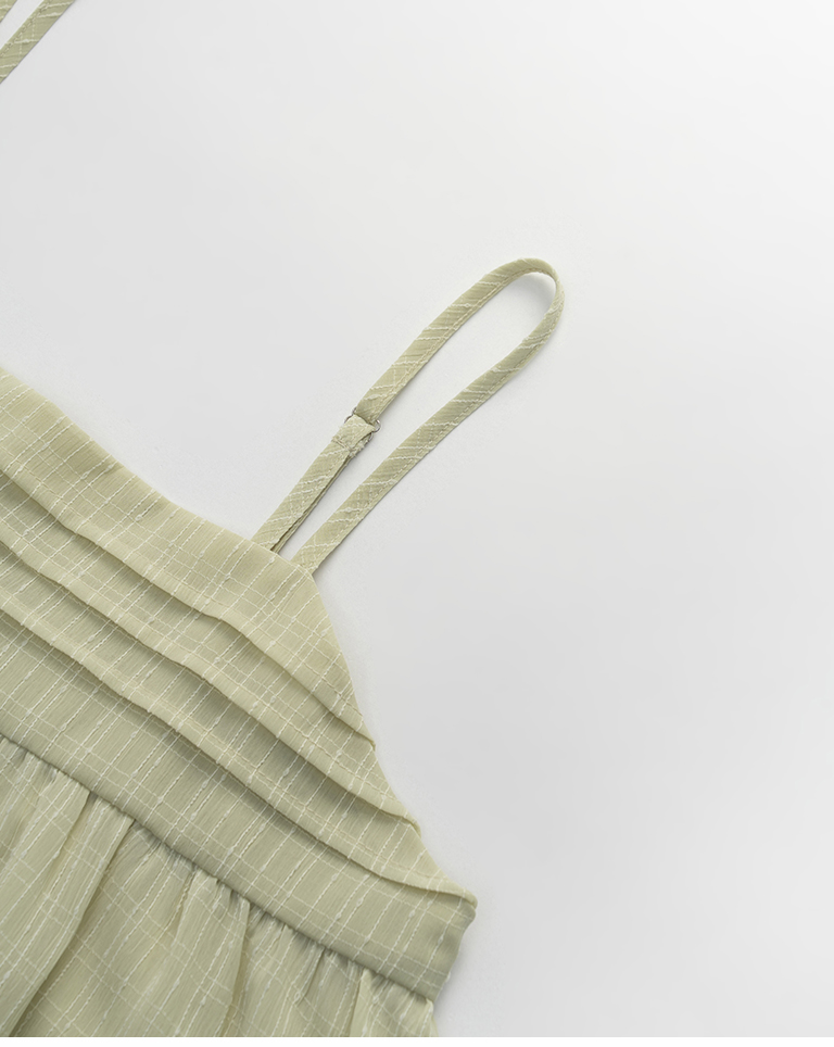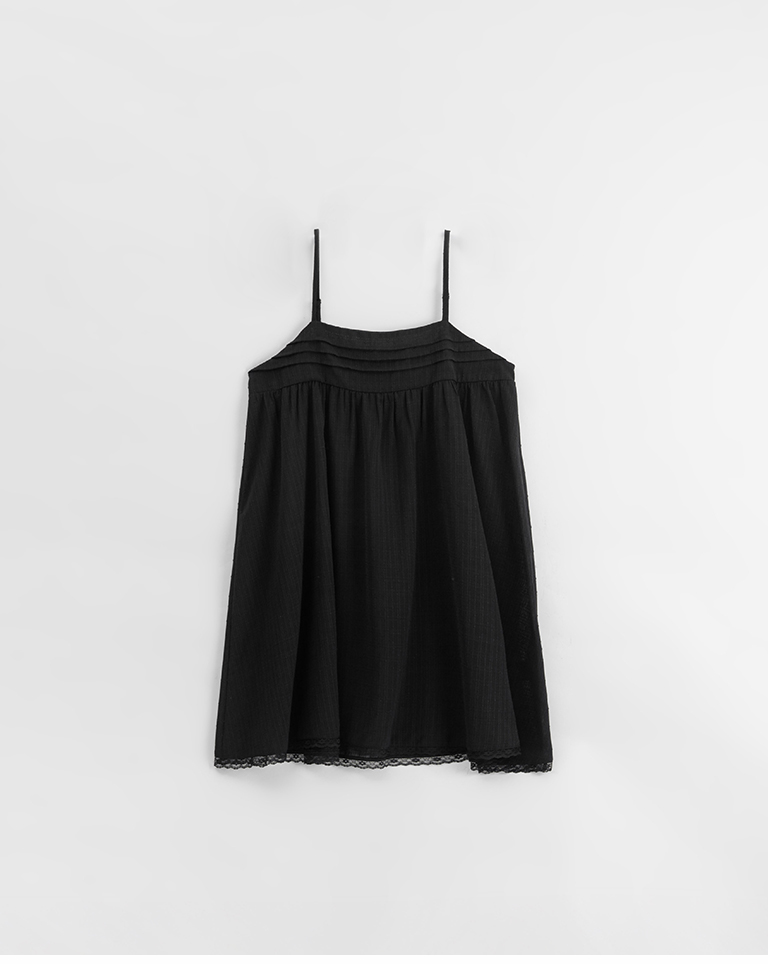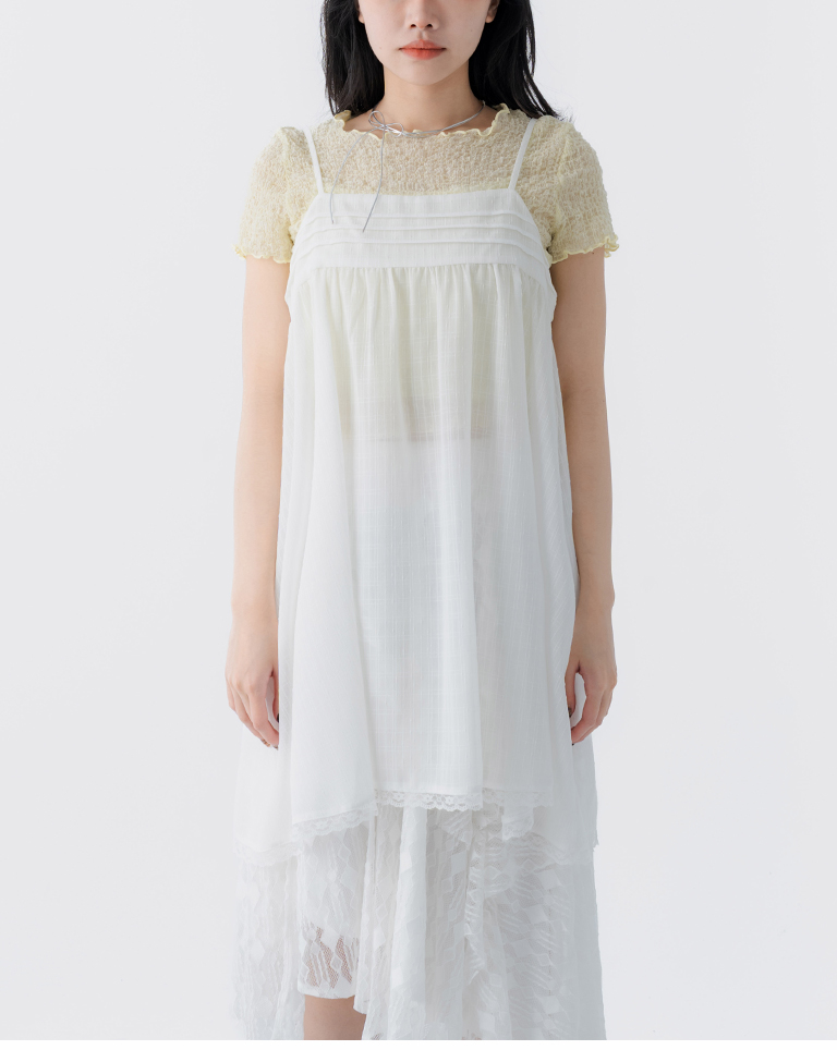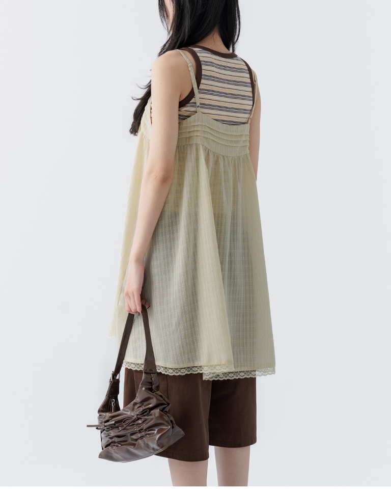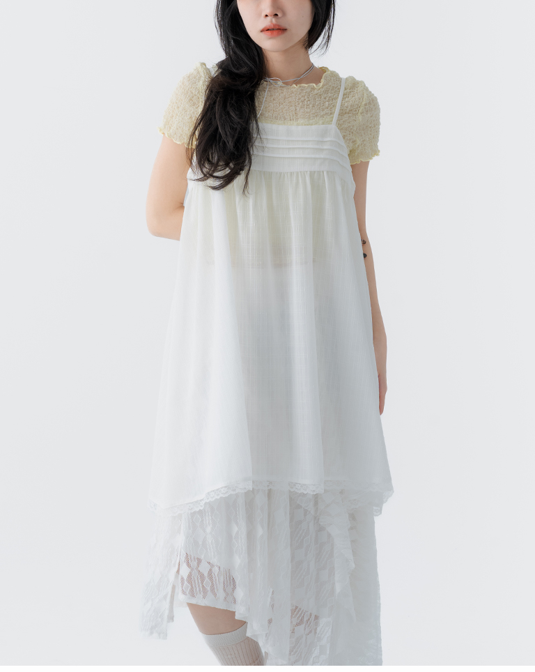 打褶下擺蕾絲設計細肩罩衫背心 三色售
