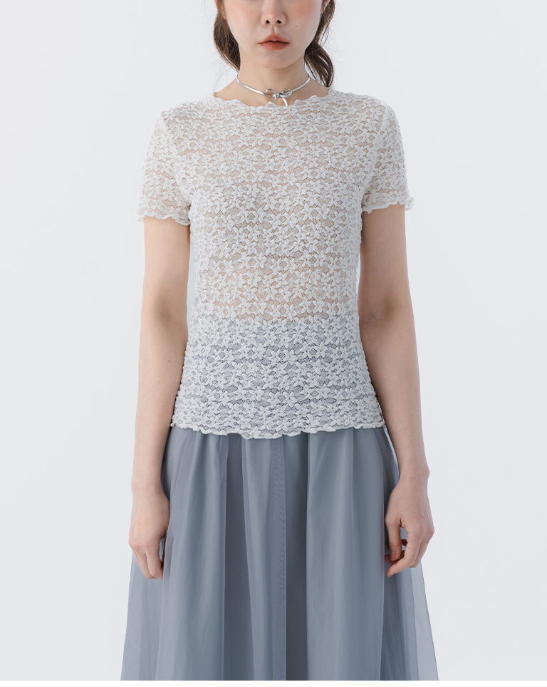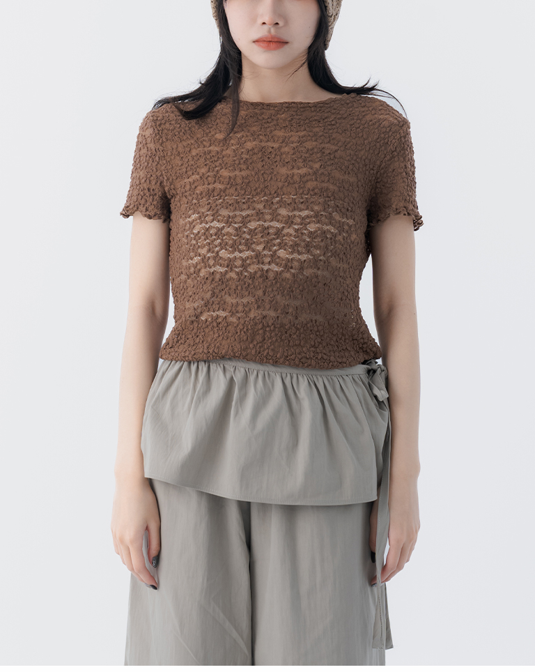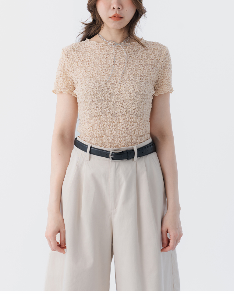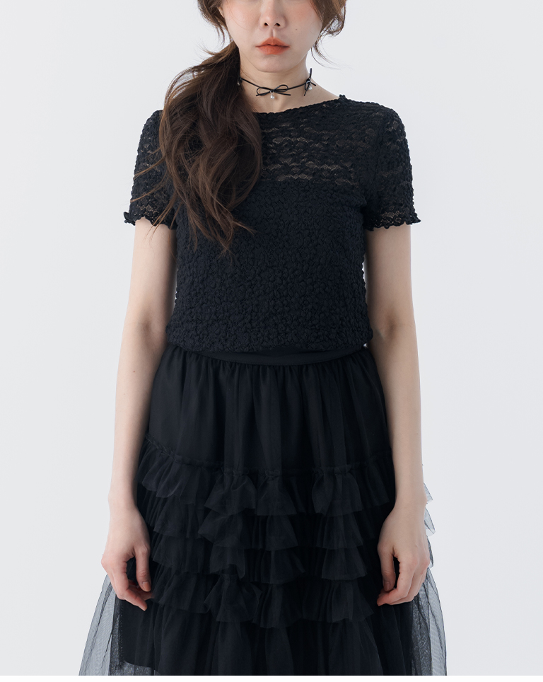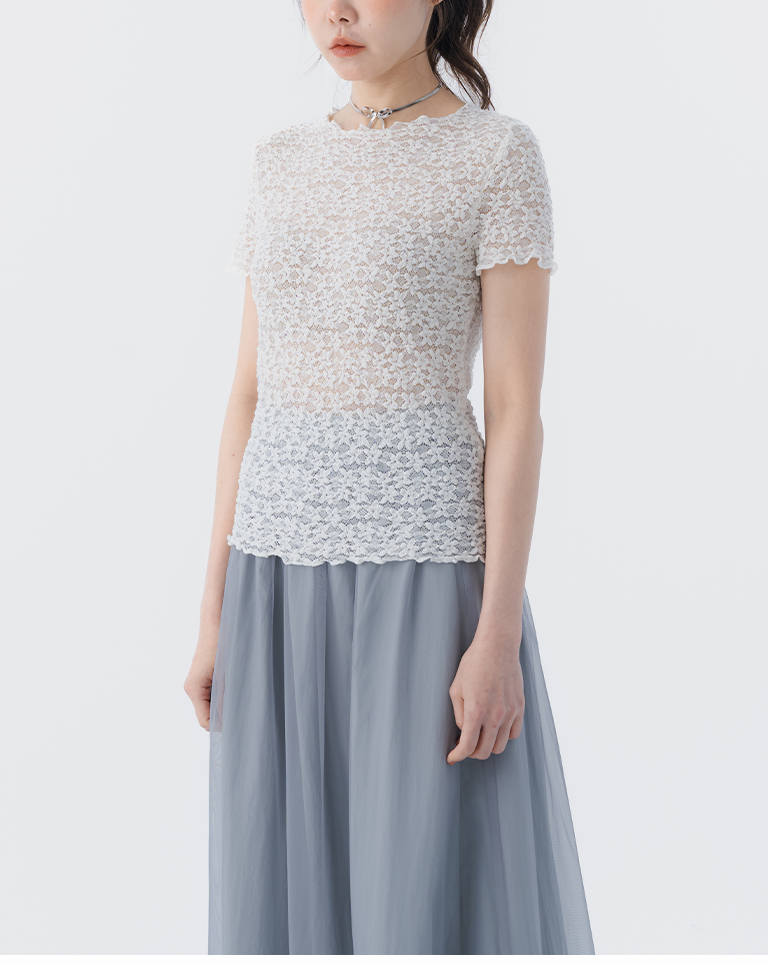 立體鏤空蕾絲緹花短袖上衣