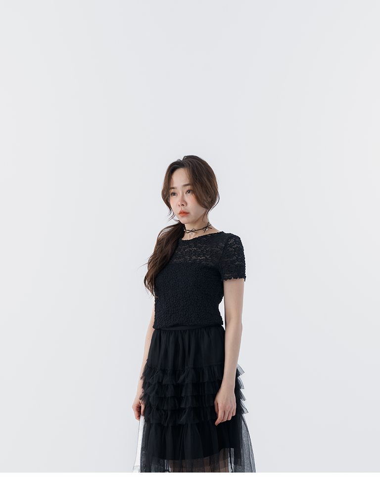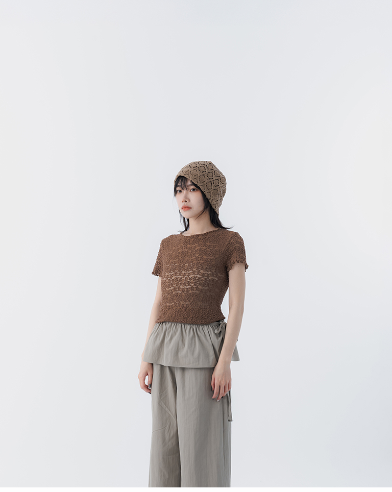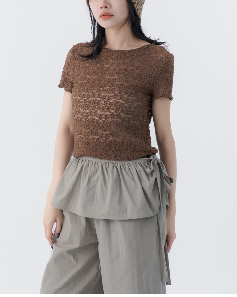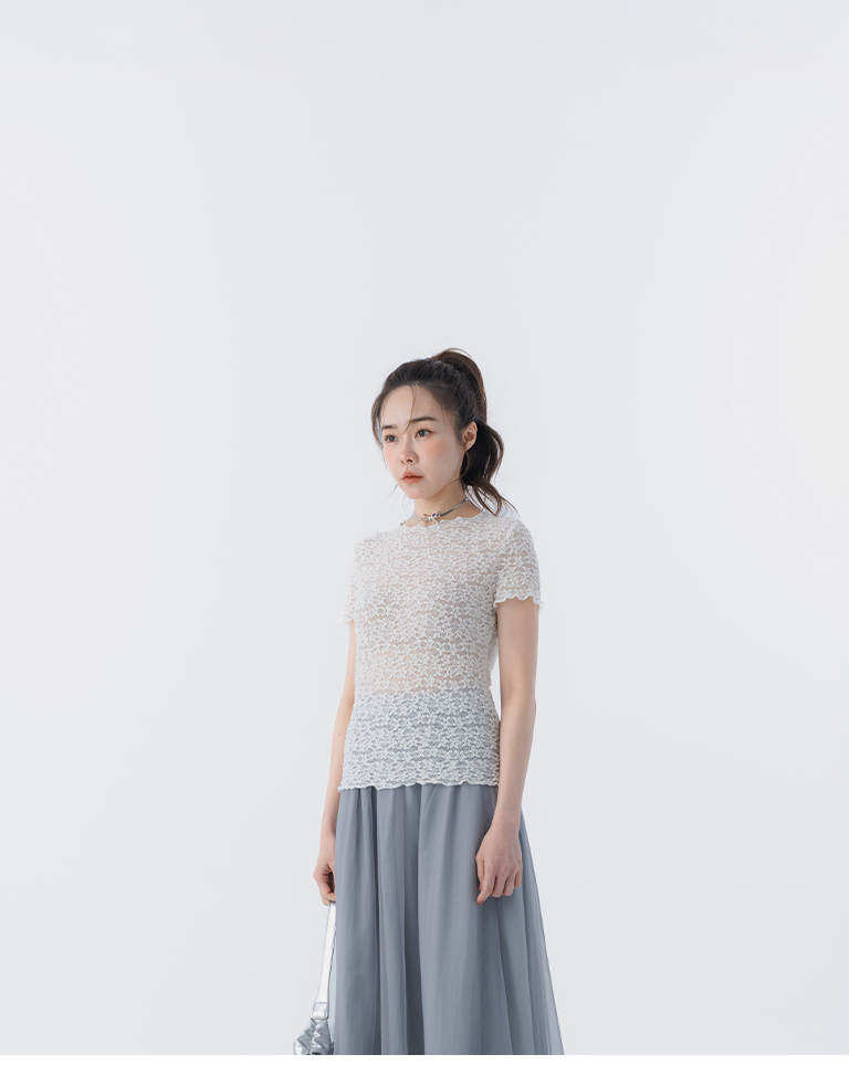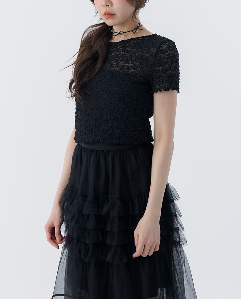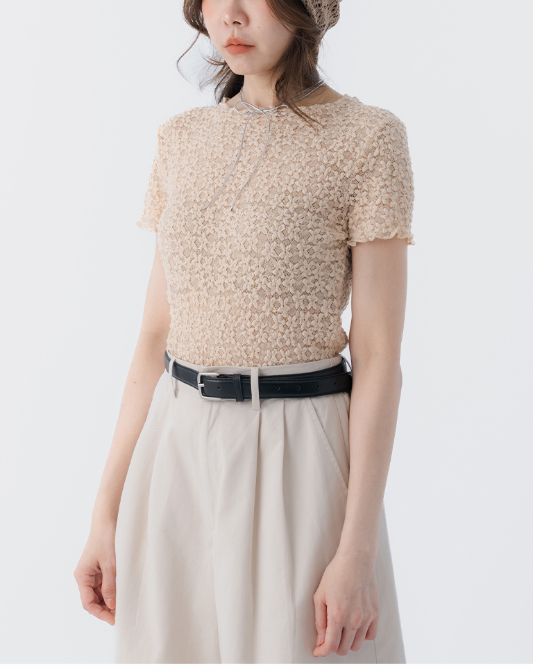 立體鏤空蕾絲緹花短袖上衣 四色售S/M