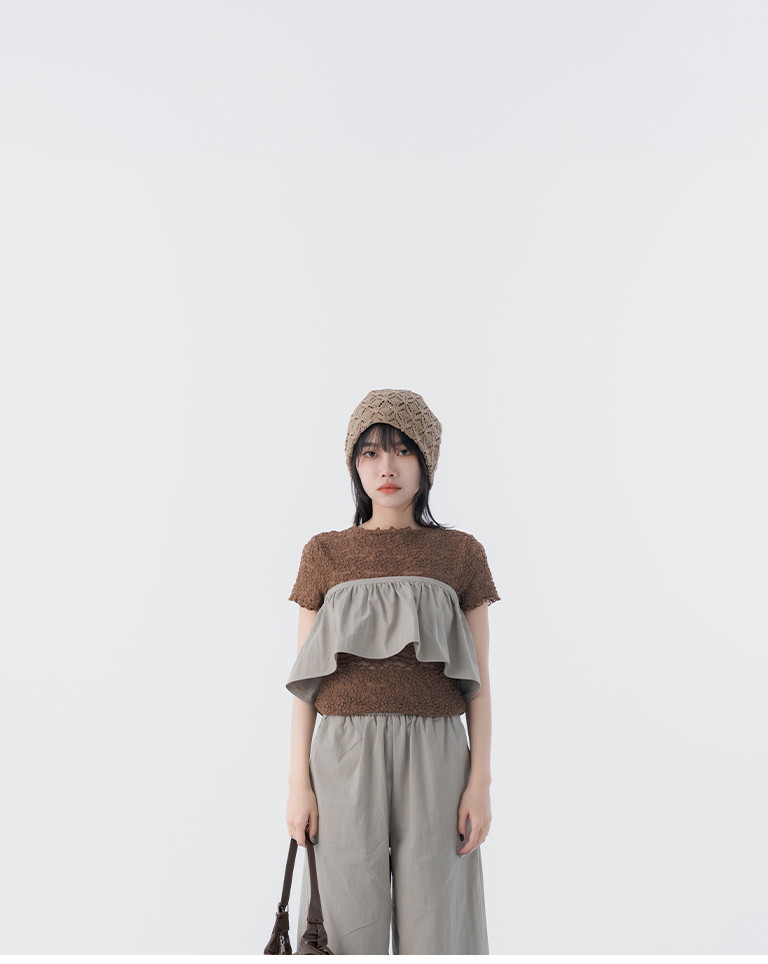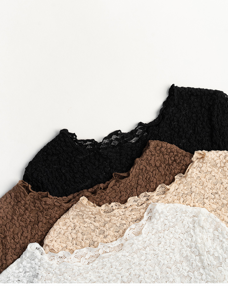 S~L身形實測!分尺寸皺皺木耳邊透膚高領長袖上衣