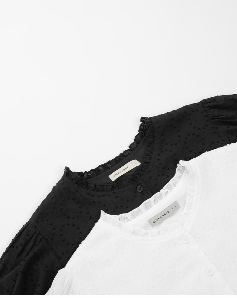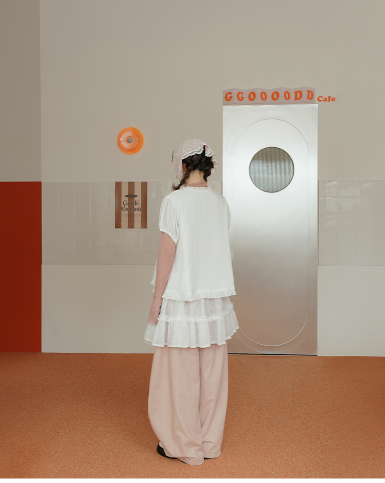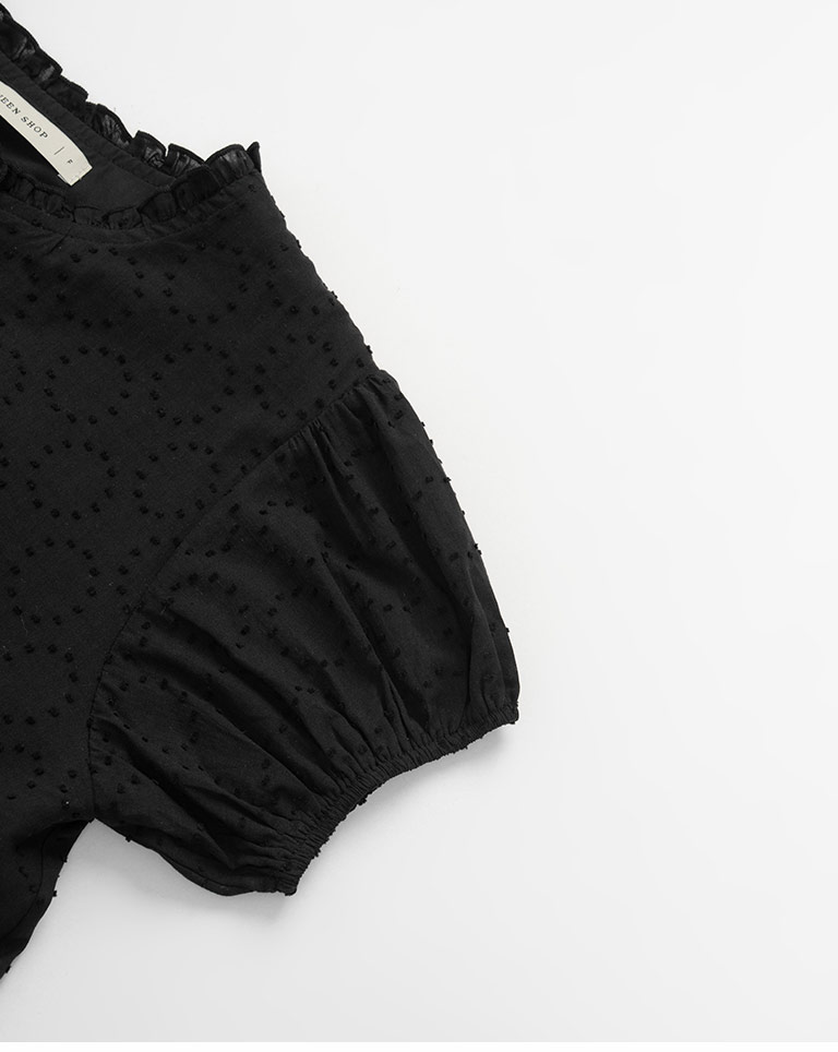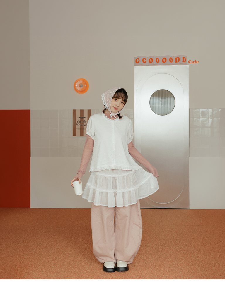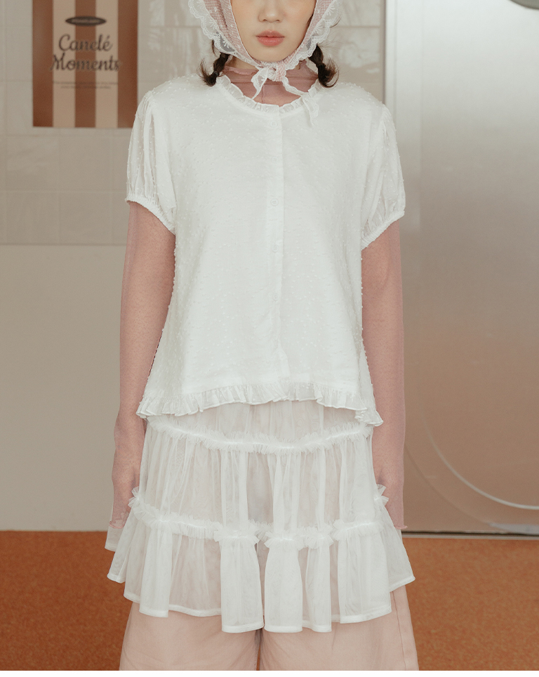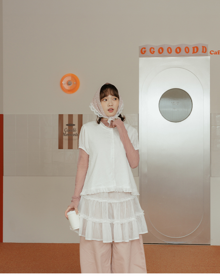 荷葉花邊澎袖造型上衣